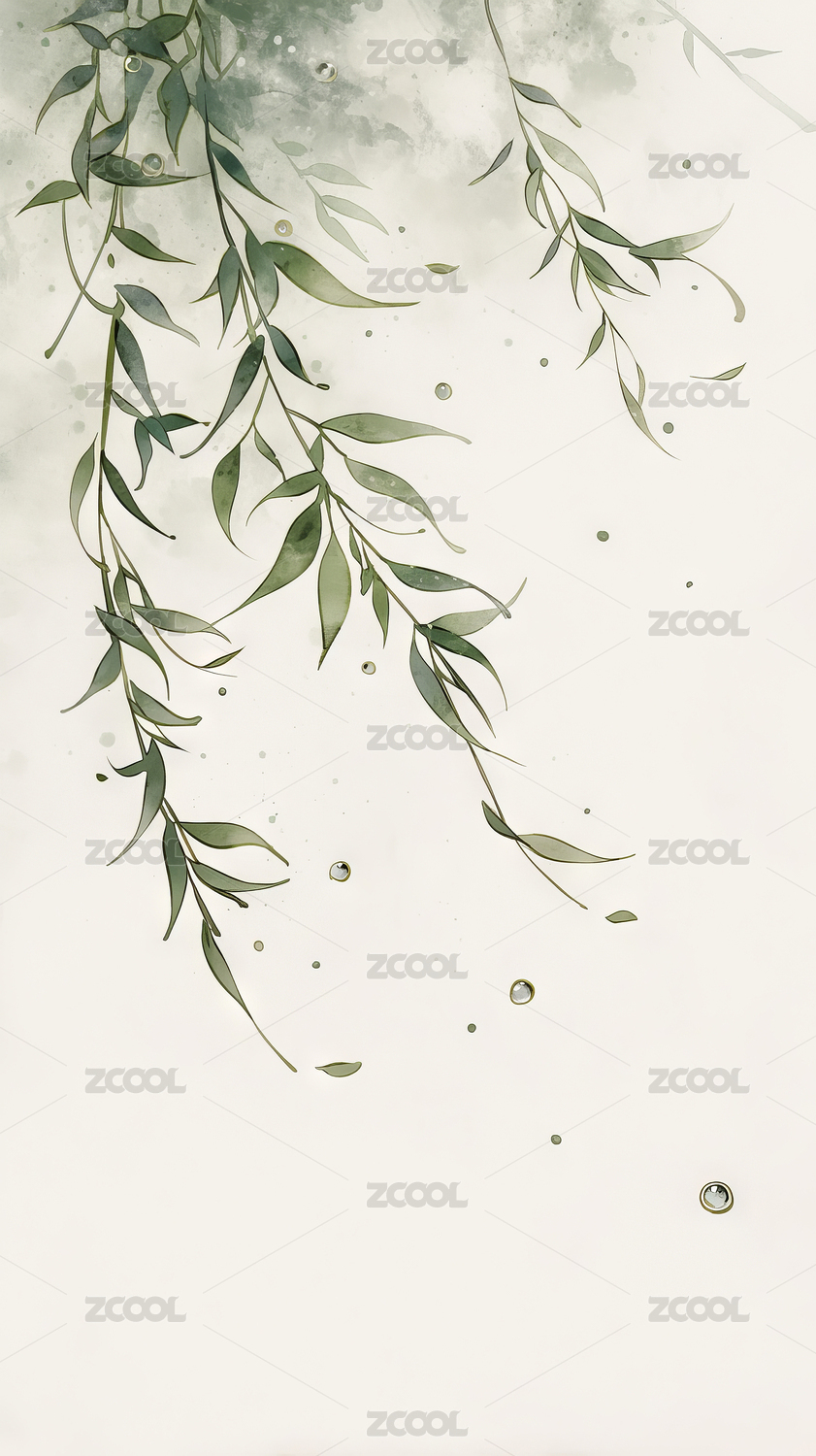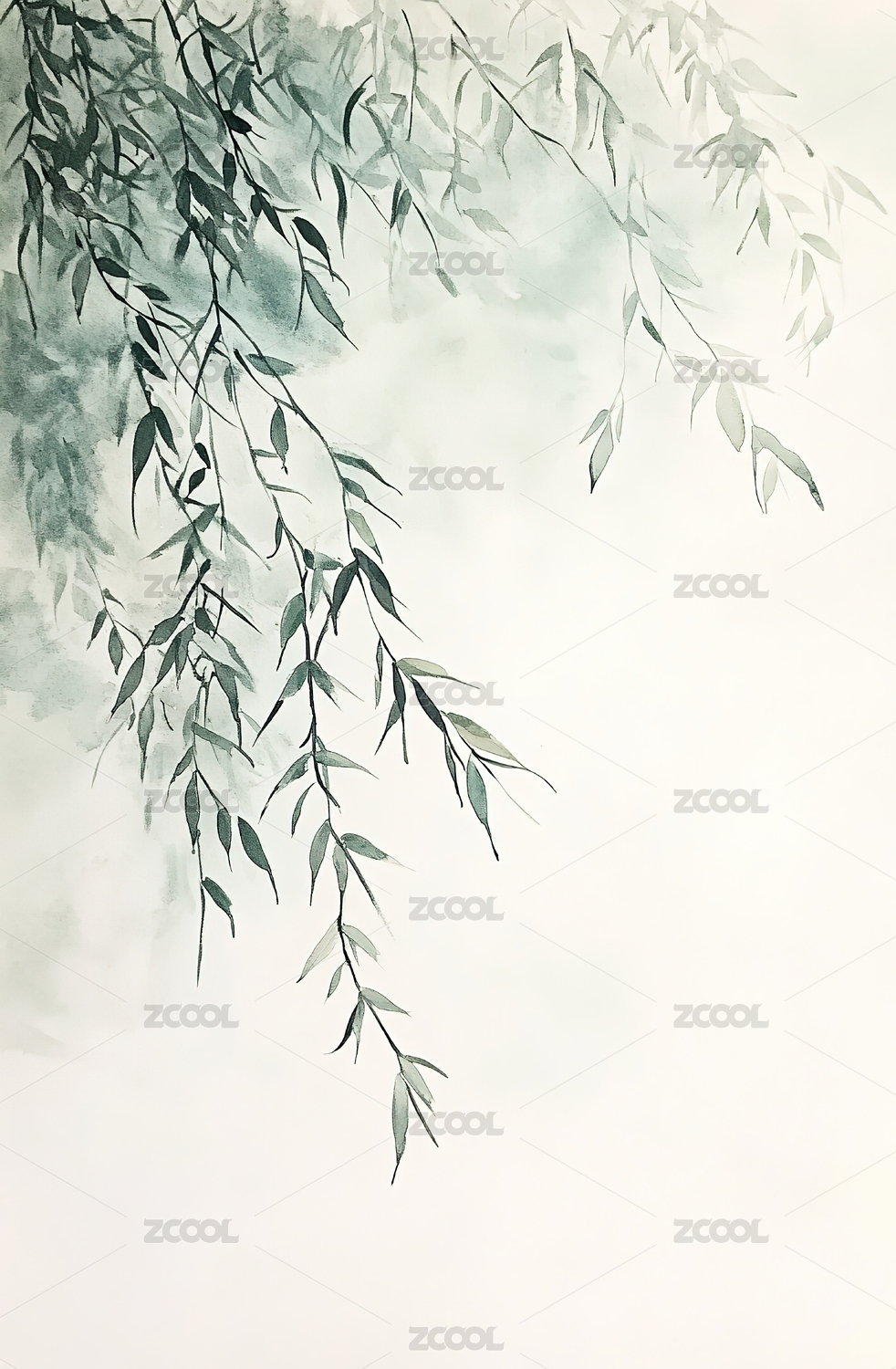 绿意盎然的柳枝与飞鸟