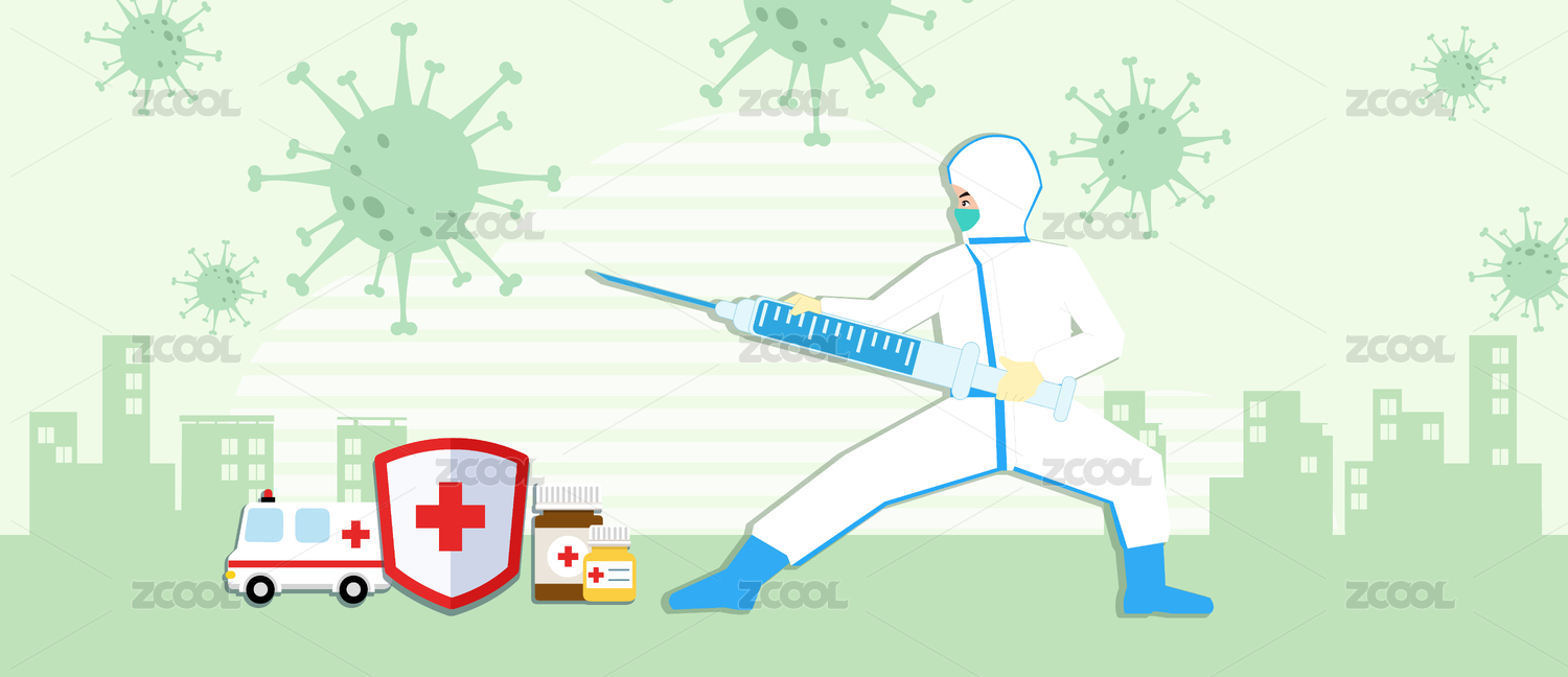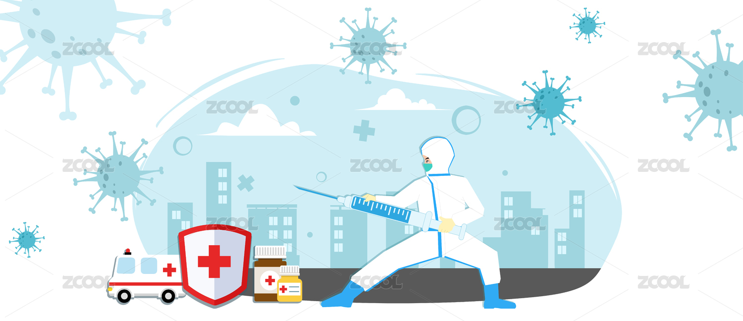 卡通手绘医护人员和病毒做抗争
