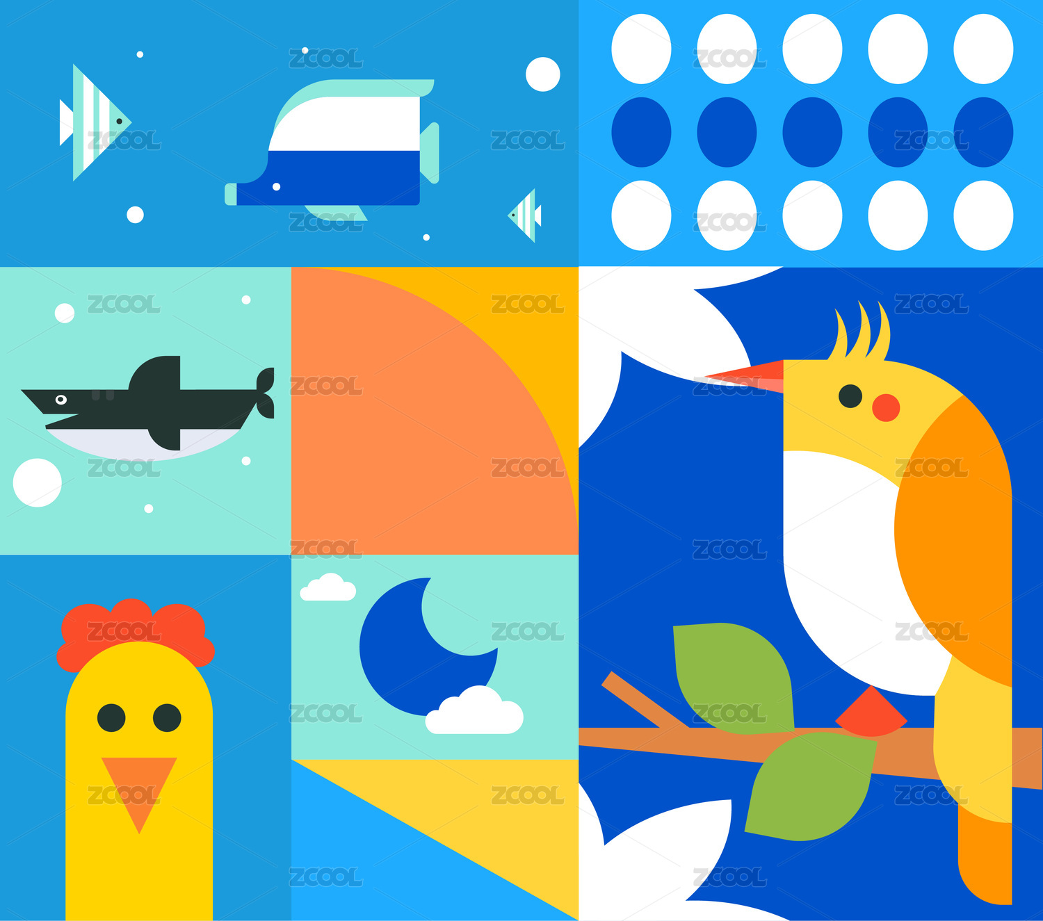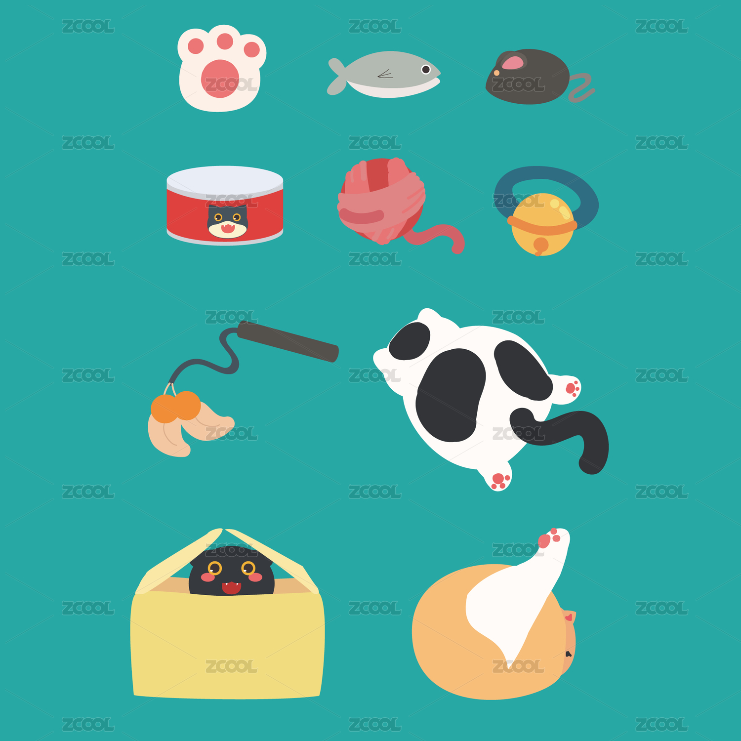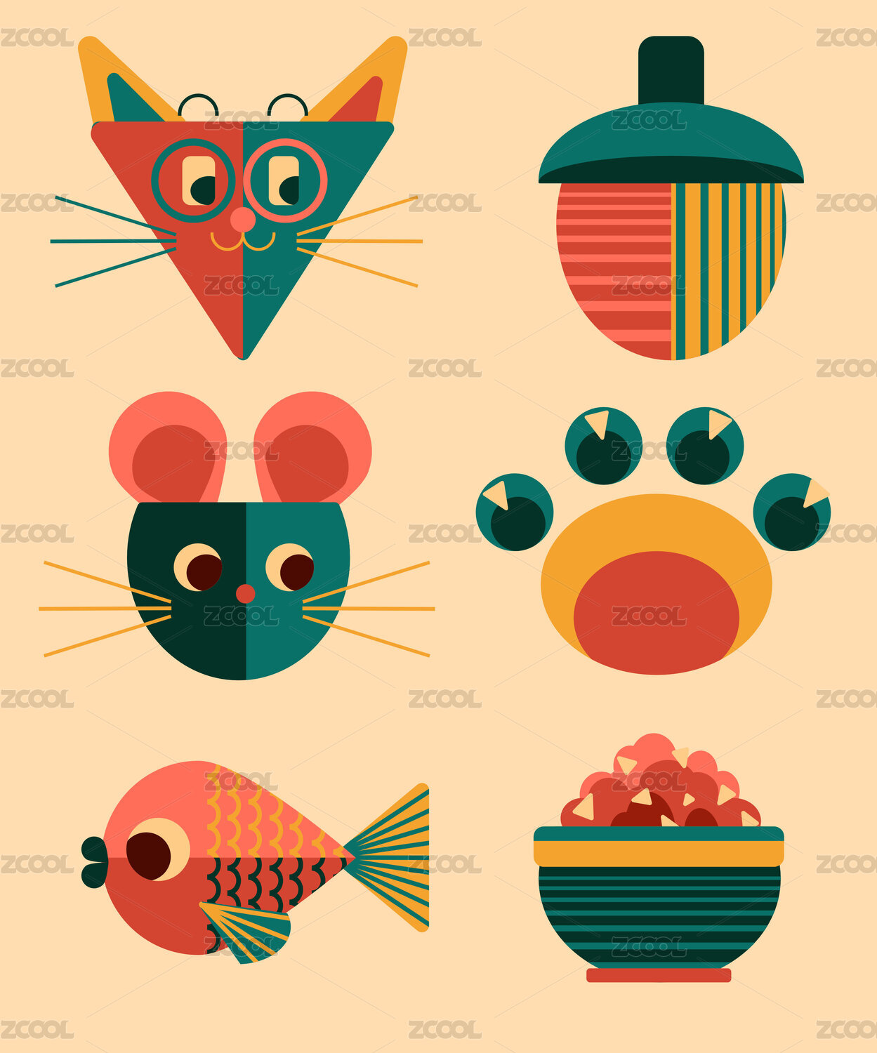 矢量插画小元素 创意造型猫咪小鱼元素设计