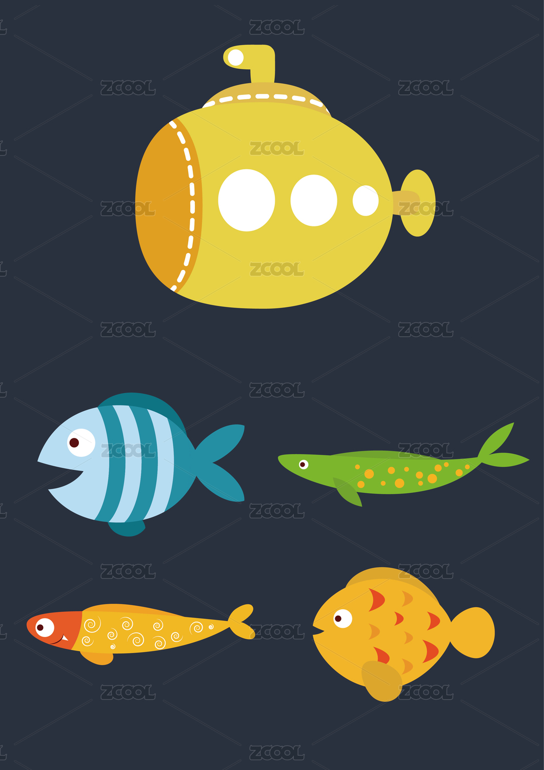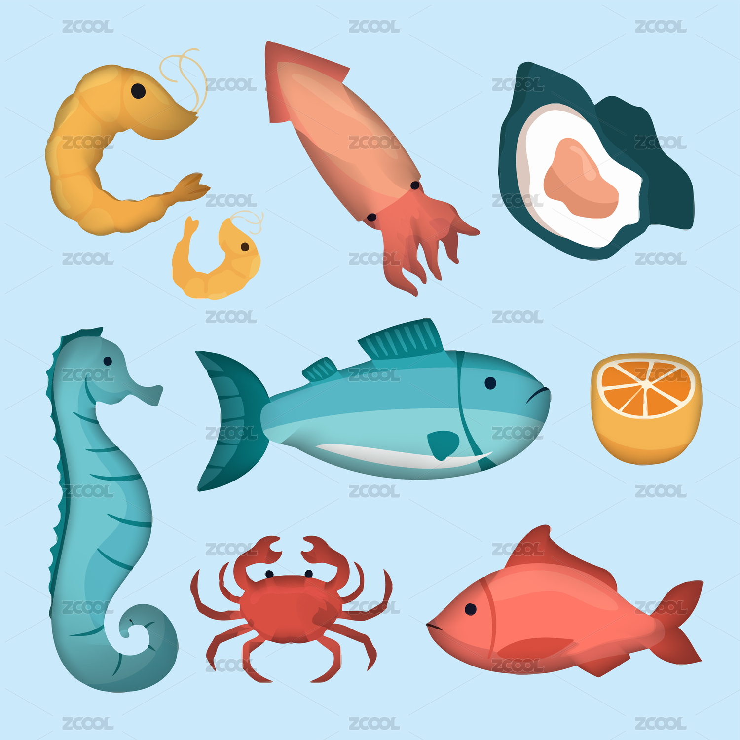 可爱卡通大海海鱼龙虾贝壳夏天泡泡服装元素