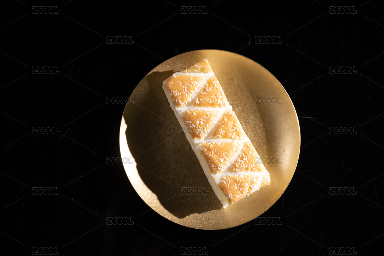桌面上的盘子里的美味可口的椰蓉蛋糕
