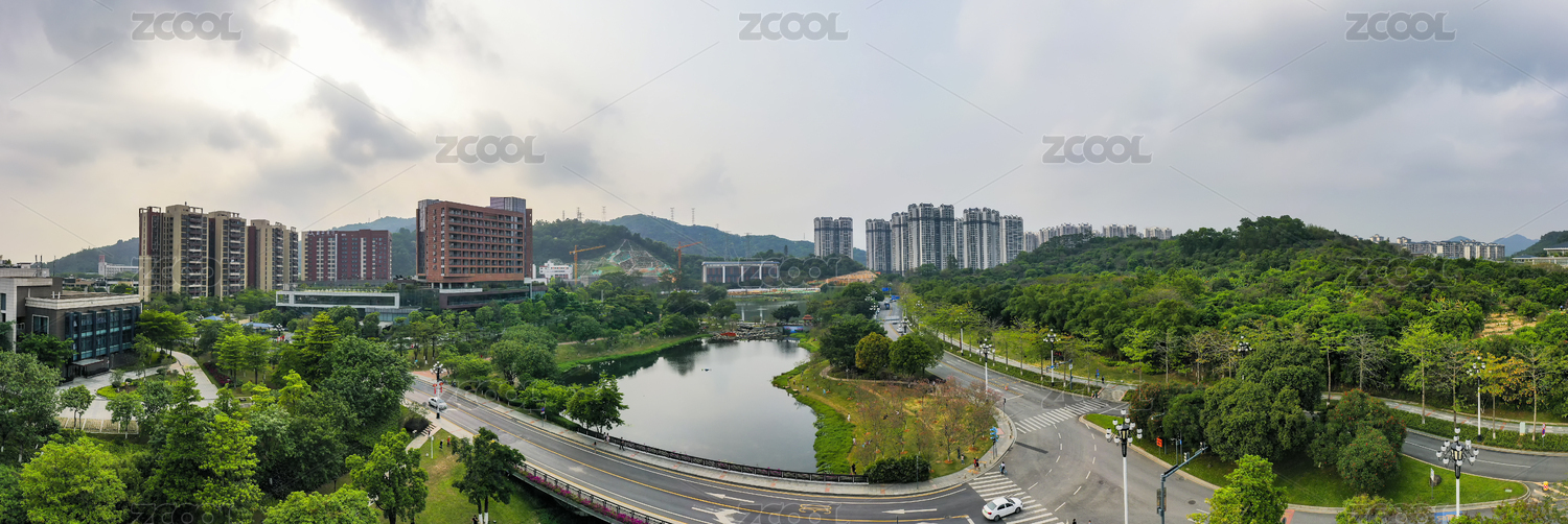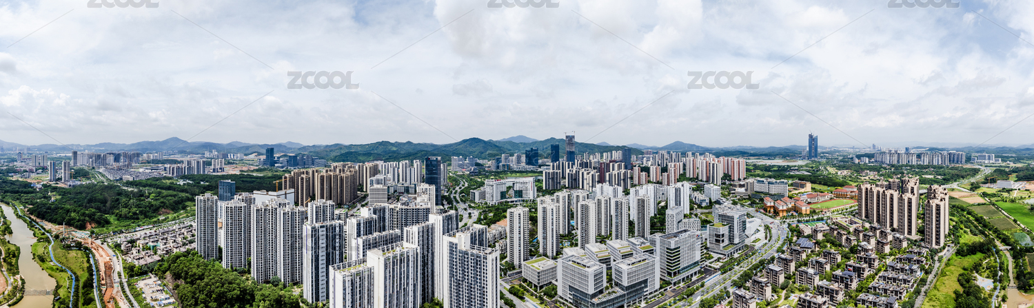 南宁狮山公园与城市密集建筑群航拍全景长图