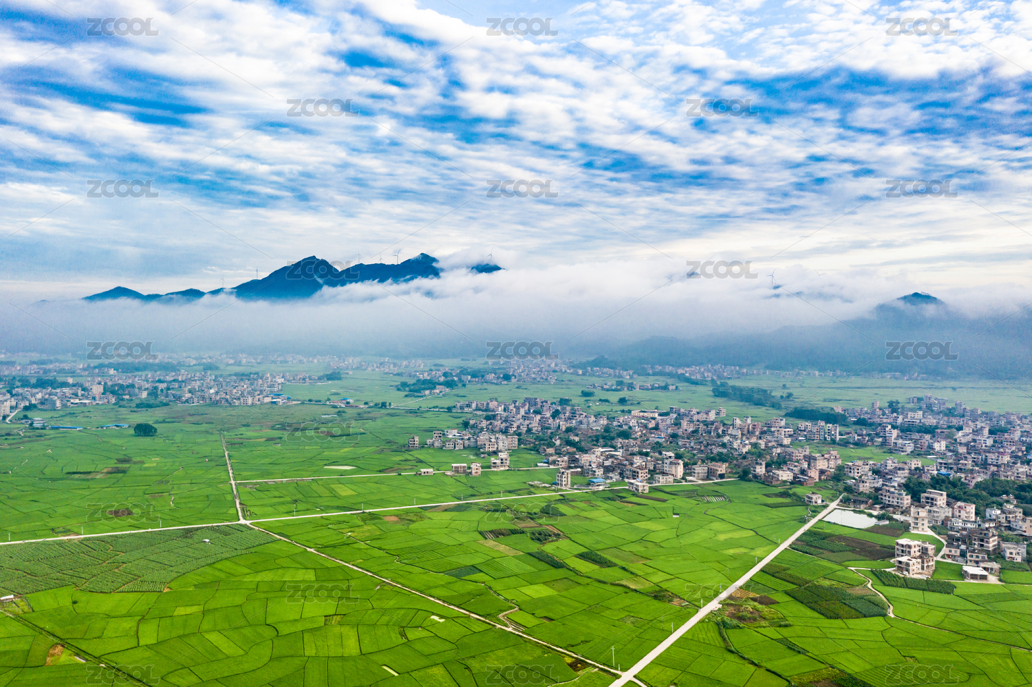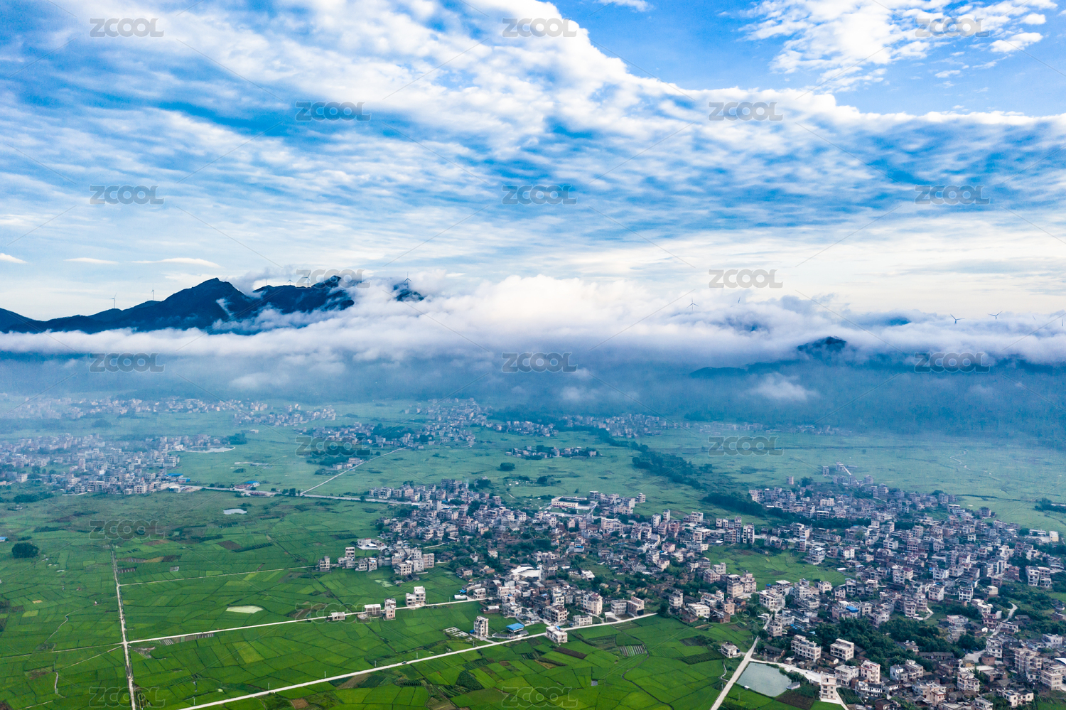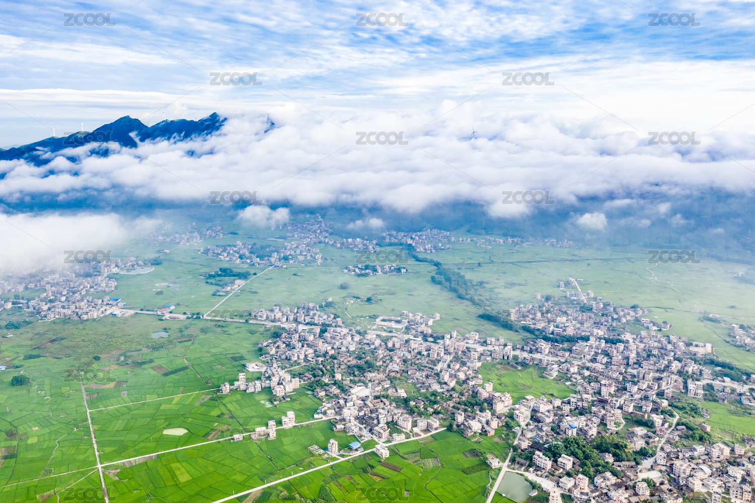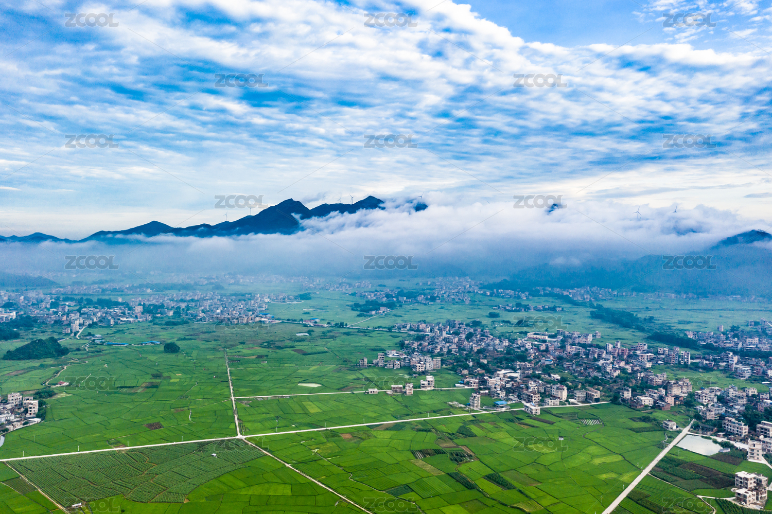 房屋,夏天,白天,下午,航拍,高视角,农作物,青山绿水,地形,土地