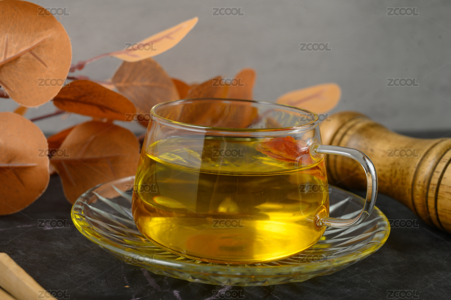 桌面上的杯子里的甘甜可口的茉莉吐珠茶