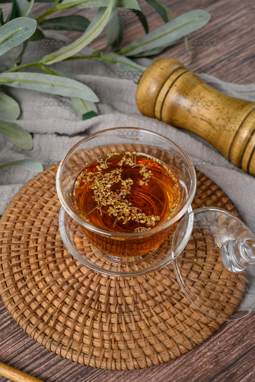 桌面上的杯子里的美味可口的桂花乌龙茶