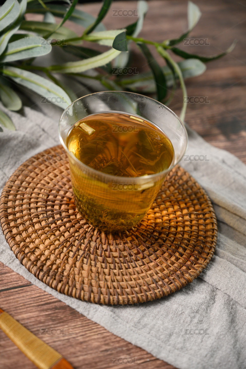 桌面上的杯子里的甘甜可口的赶黄草茶