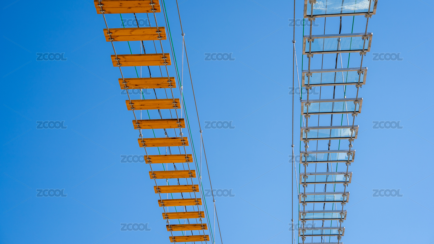 蓝天背景下的高空栈道特写