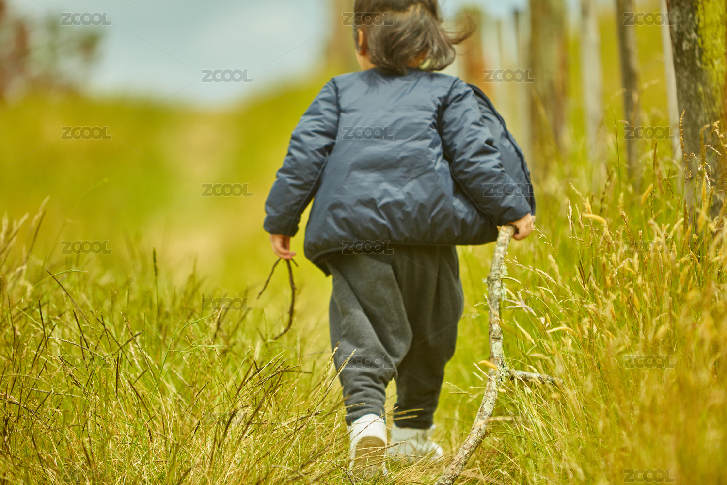 一男孩子在田野玩耍