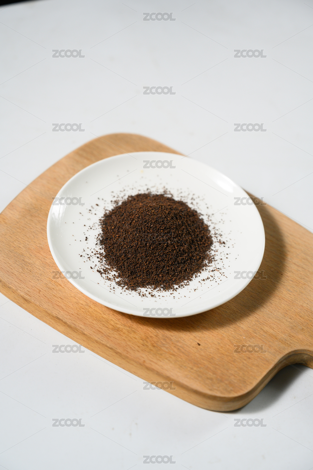 桌面上的盘子里的香气四溢的锡兰红茶茶叶粉