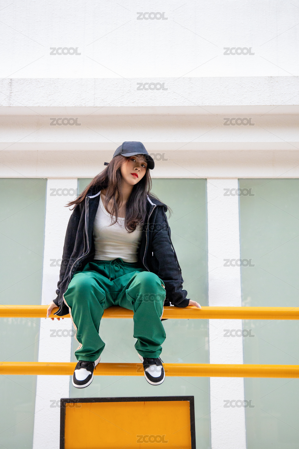 坐在栏杆上俊酷的女生