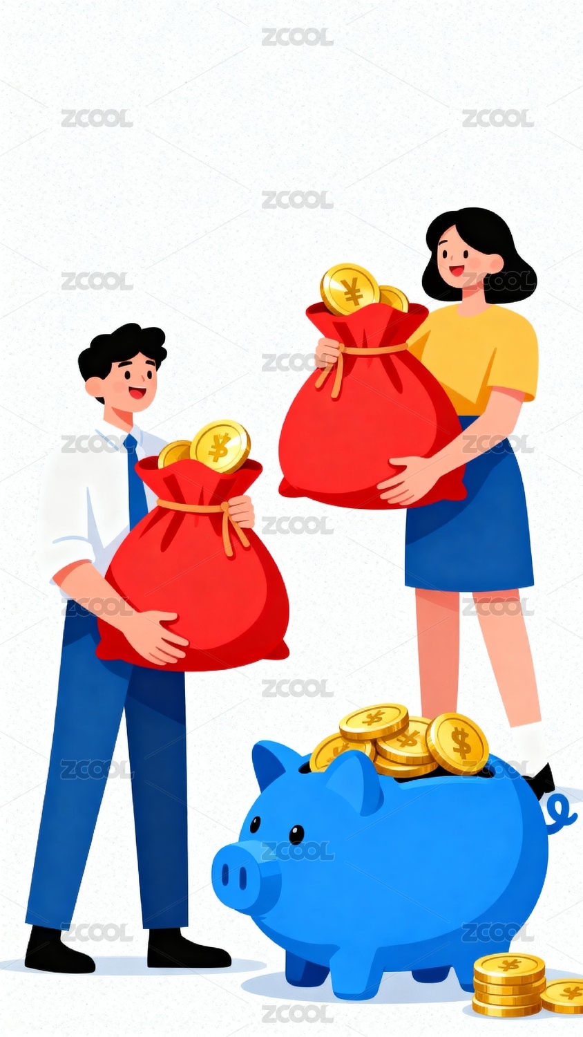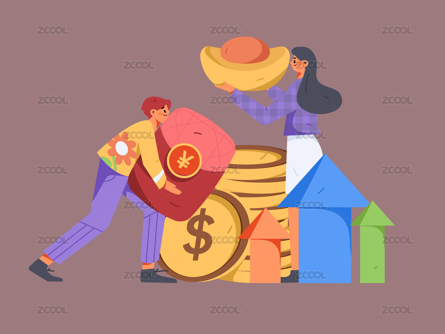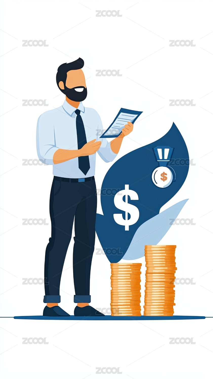 人物打开钱袋出现金币红包优惠券的矢量插画