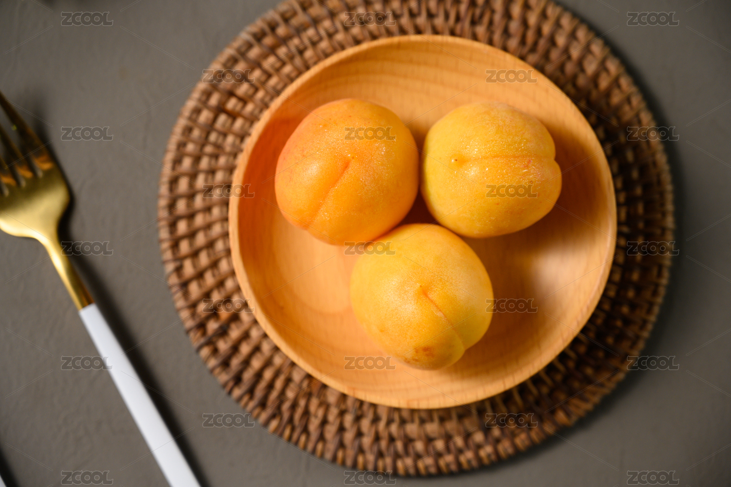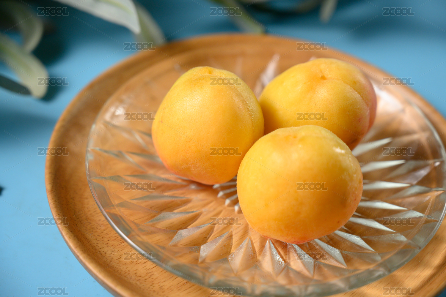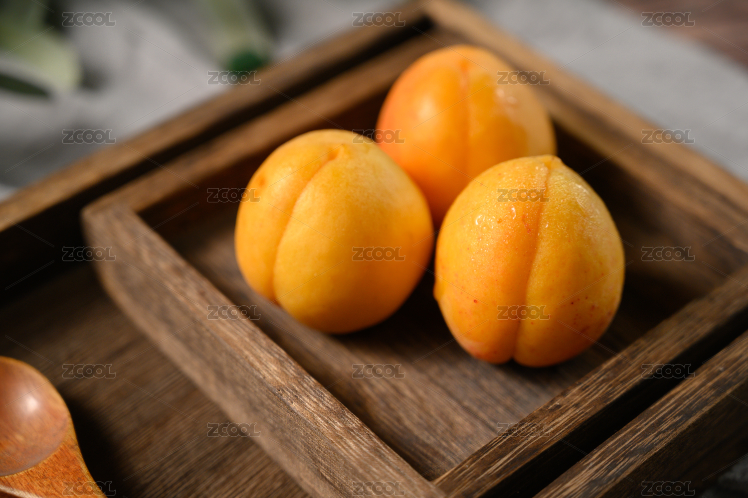 桌面上的盘子里的美味可口的黄杏子