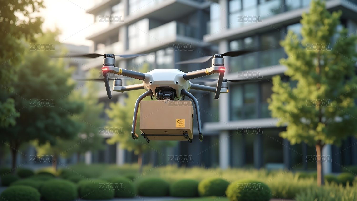 无人机,快递,飞机,物流,低空经济,黄昏,摩天大楼,城市,街道,阳光