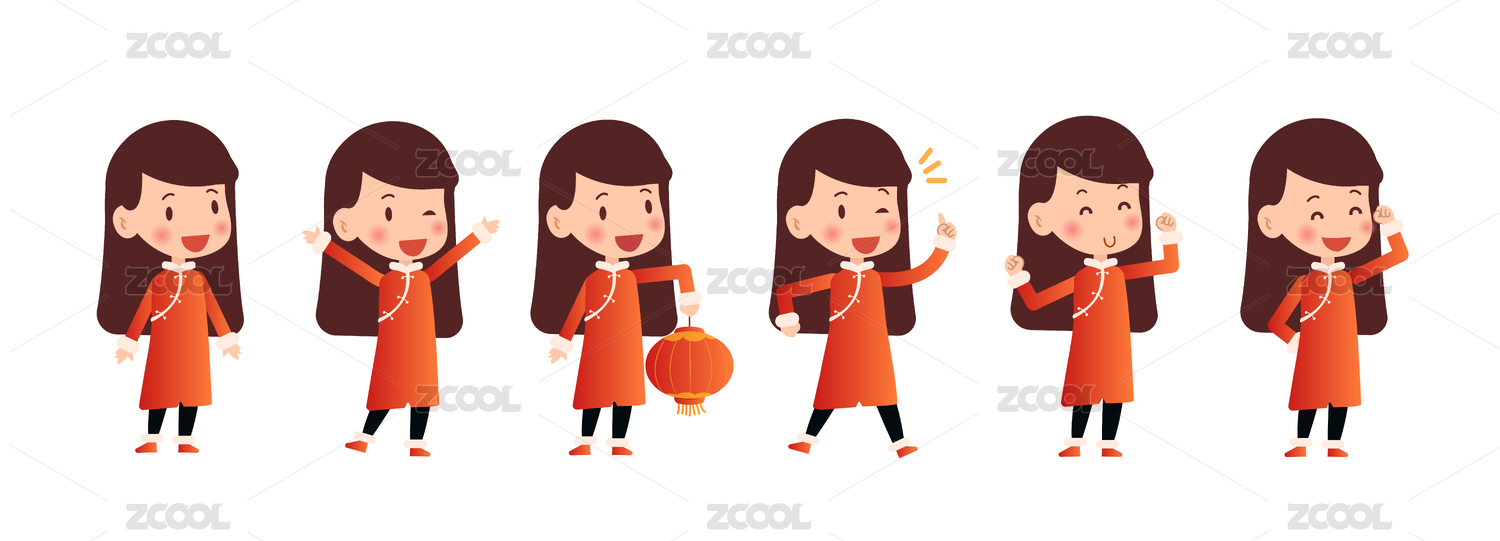 长发,女孩,可爱,矢量图,人物,小女孩,生气,愉快,人设,设定