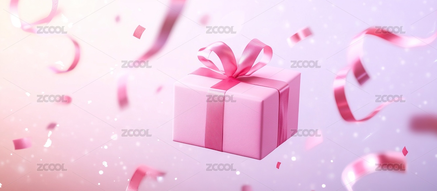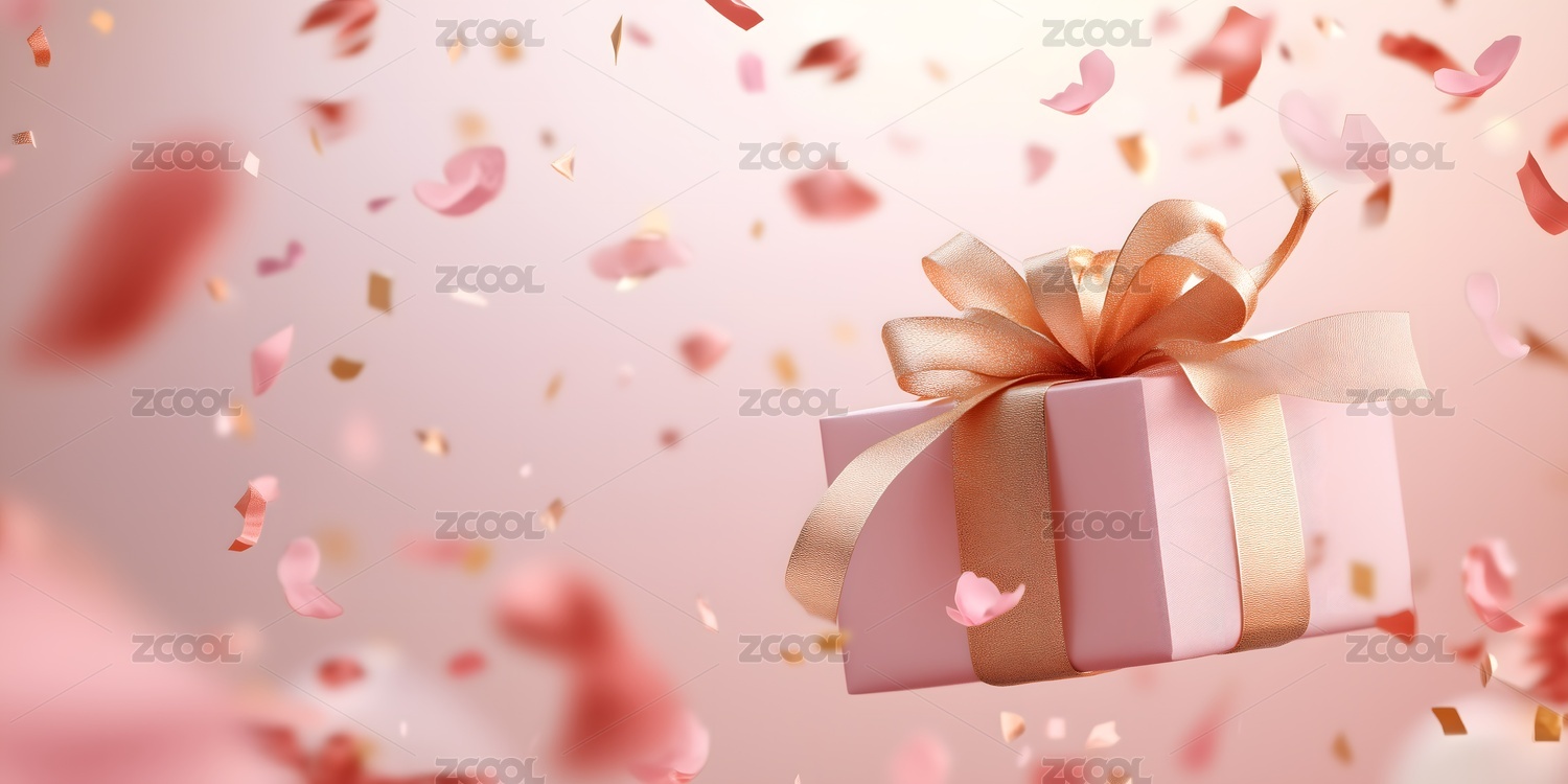粉红色的礼物与纸屑
