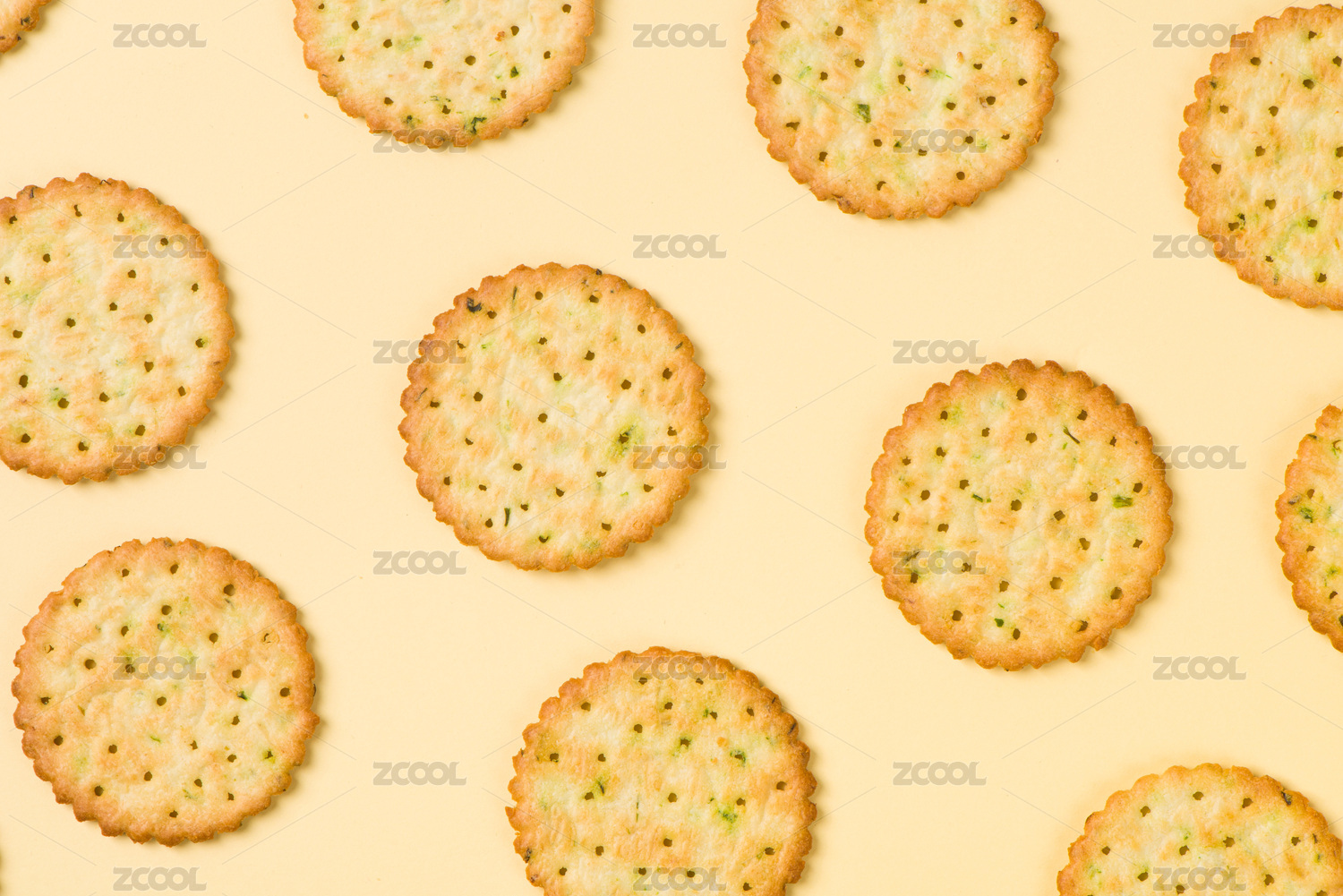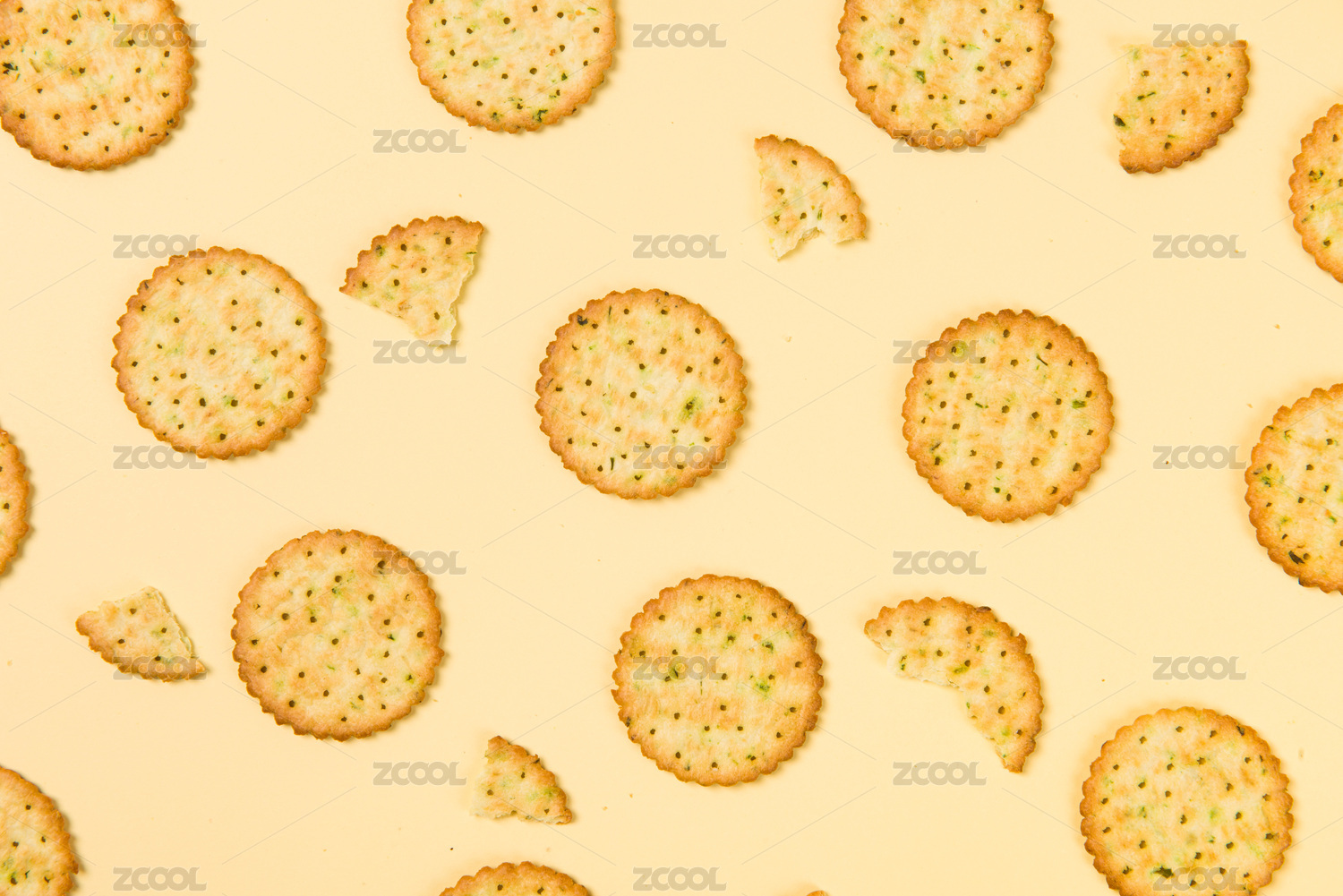 放在黄色背景中的咸蛋黄麦芽糖饼干