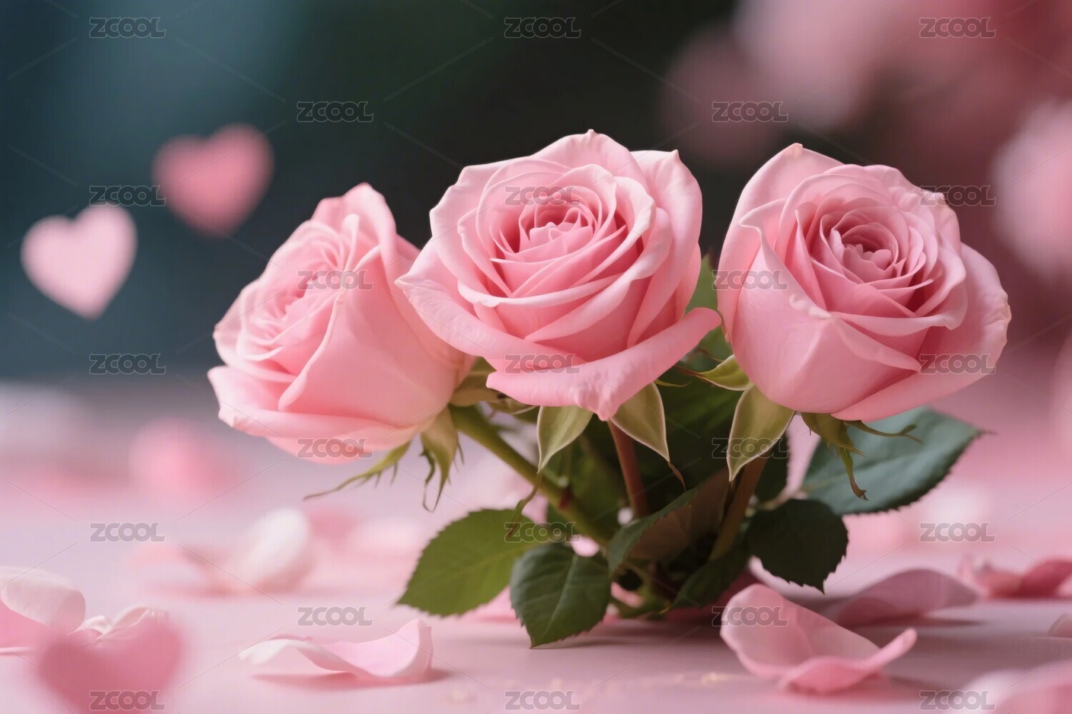 棚拍静物粉色玫瑰花爱心与礼物盒