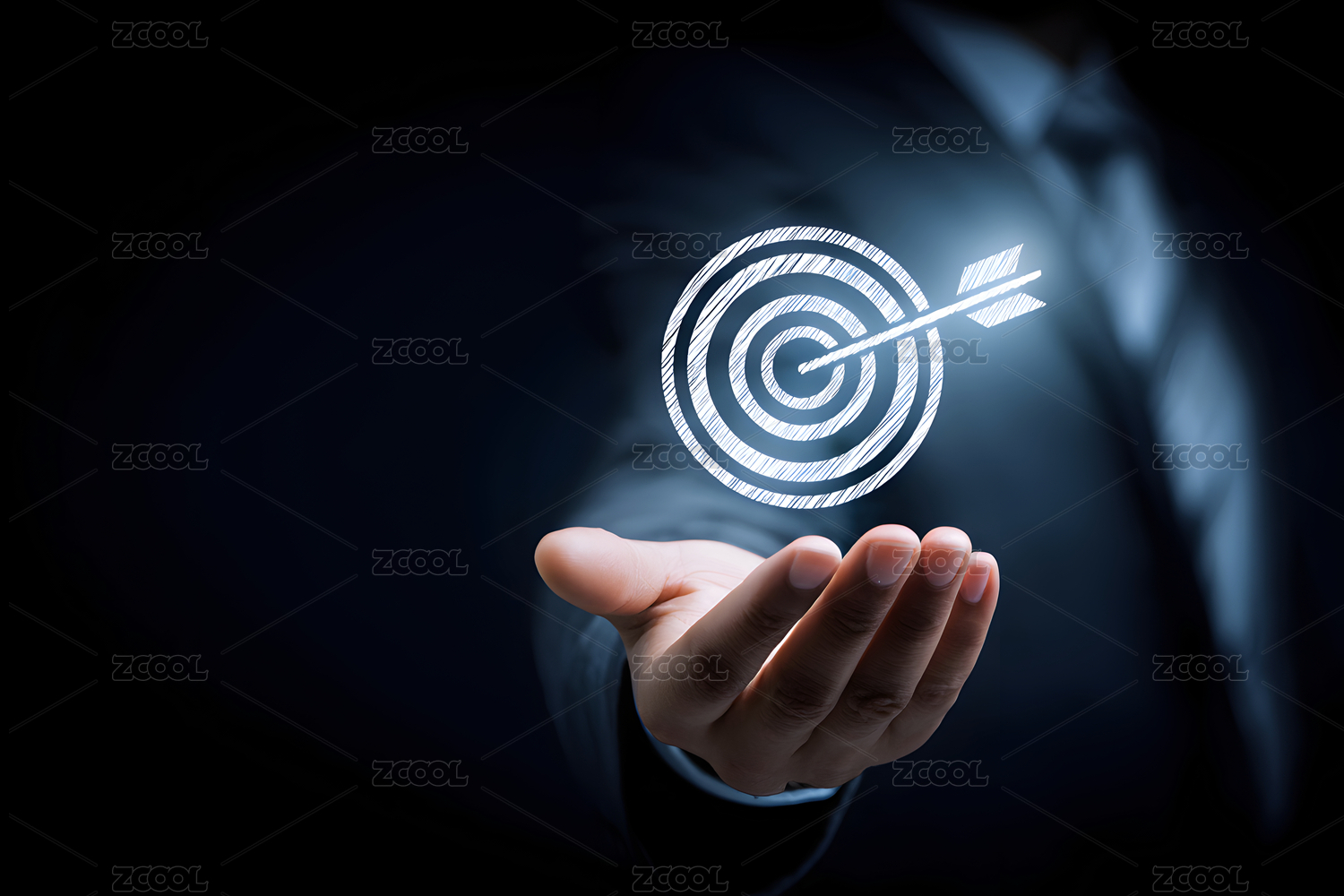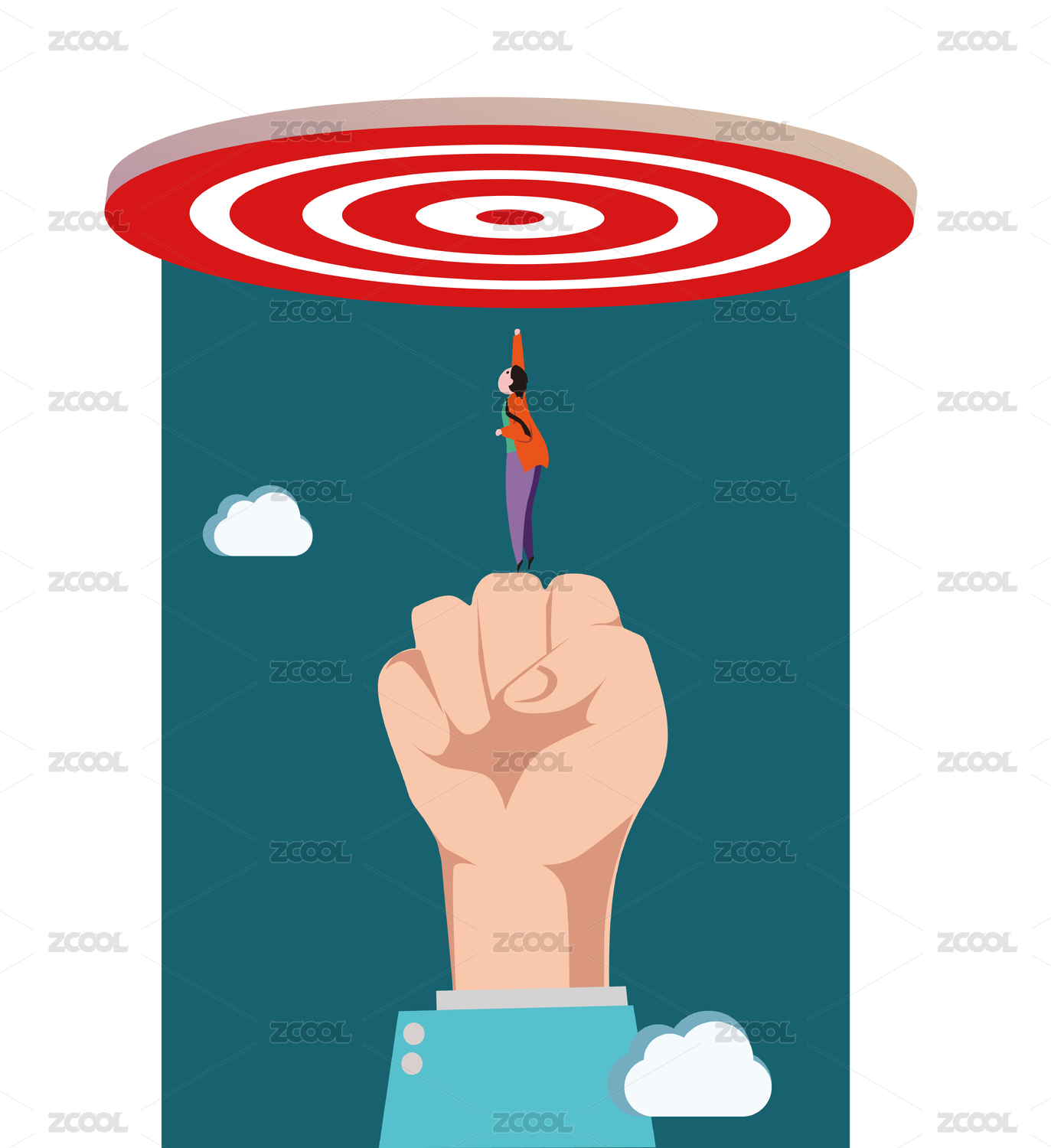 蓝色背景,金融商务人士在拳头助力下接近靶子目标