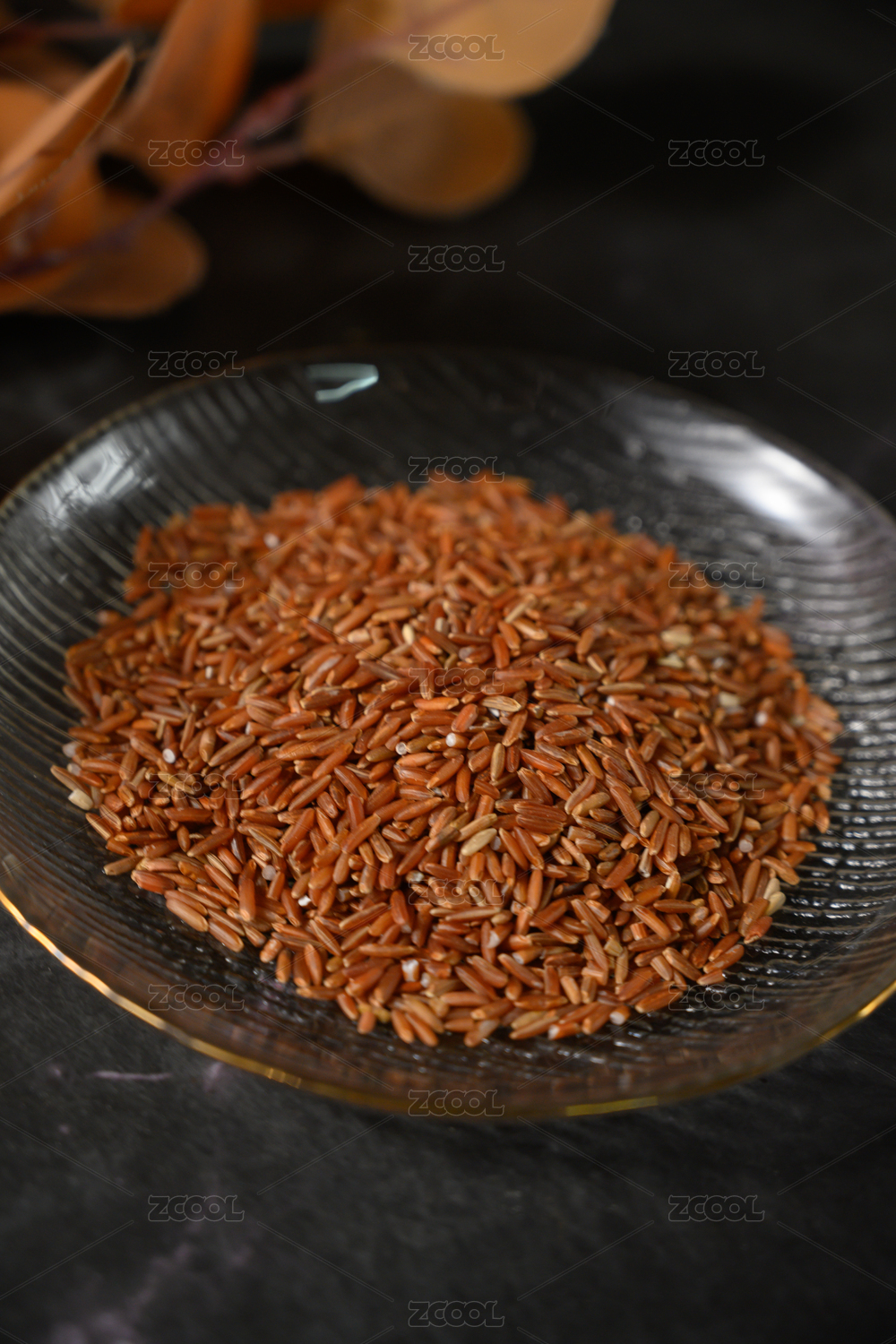 桌面上的盘子里的干爽的红米