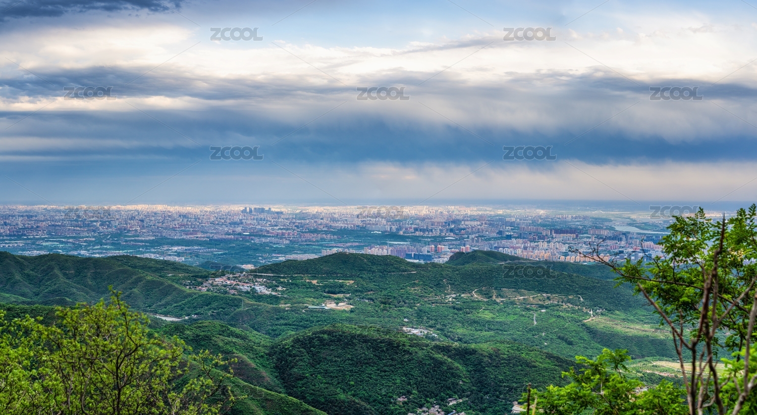 从北京海淀区阳台山俯瞰城市全景