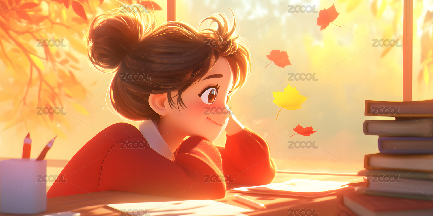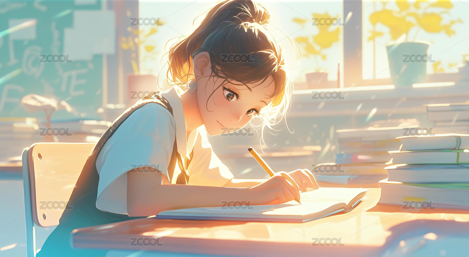 插画,阳光,静谧,童趣,女孩,专注,学习,室内,创作,艺术