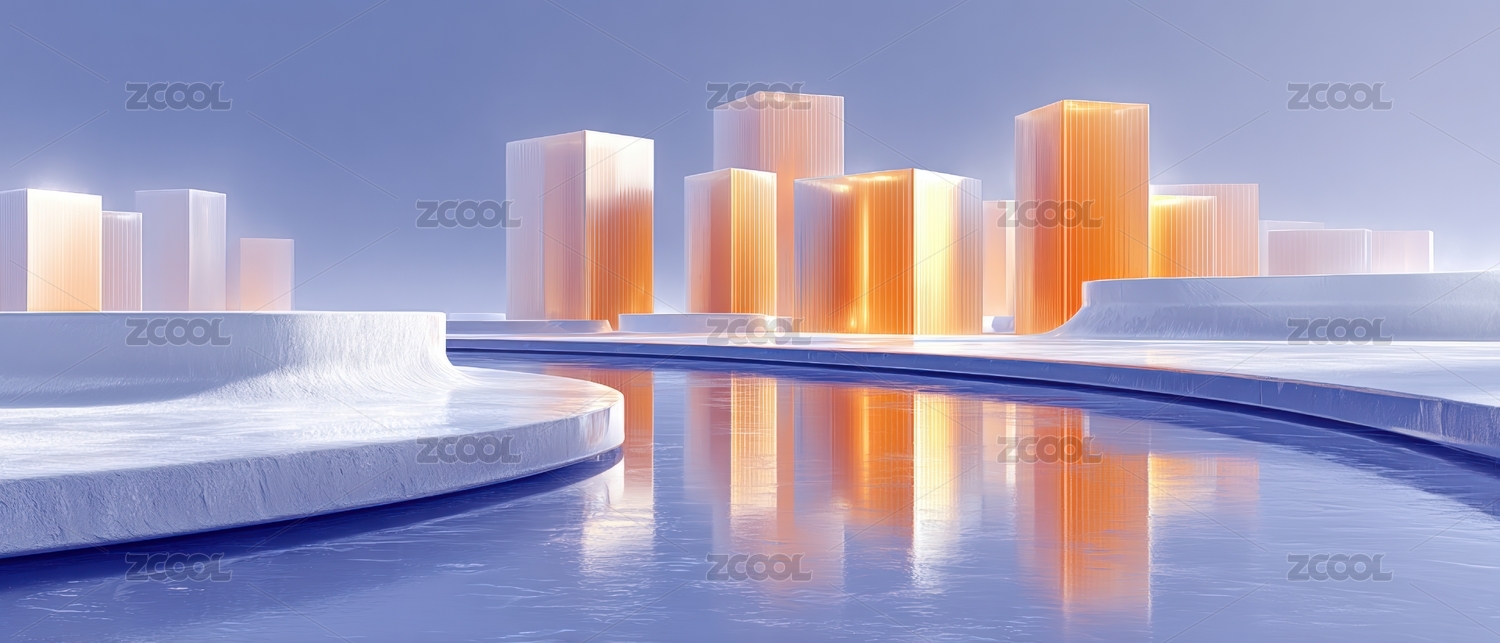 极简抽象城市与水域景观