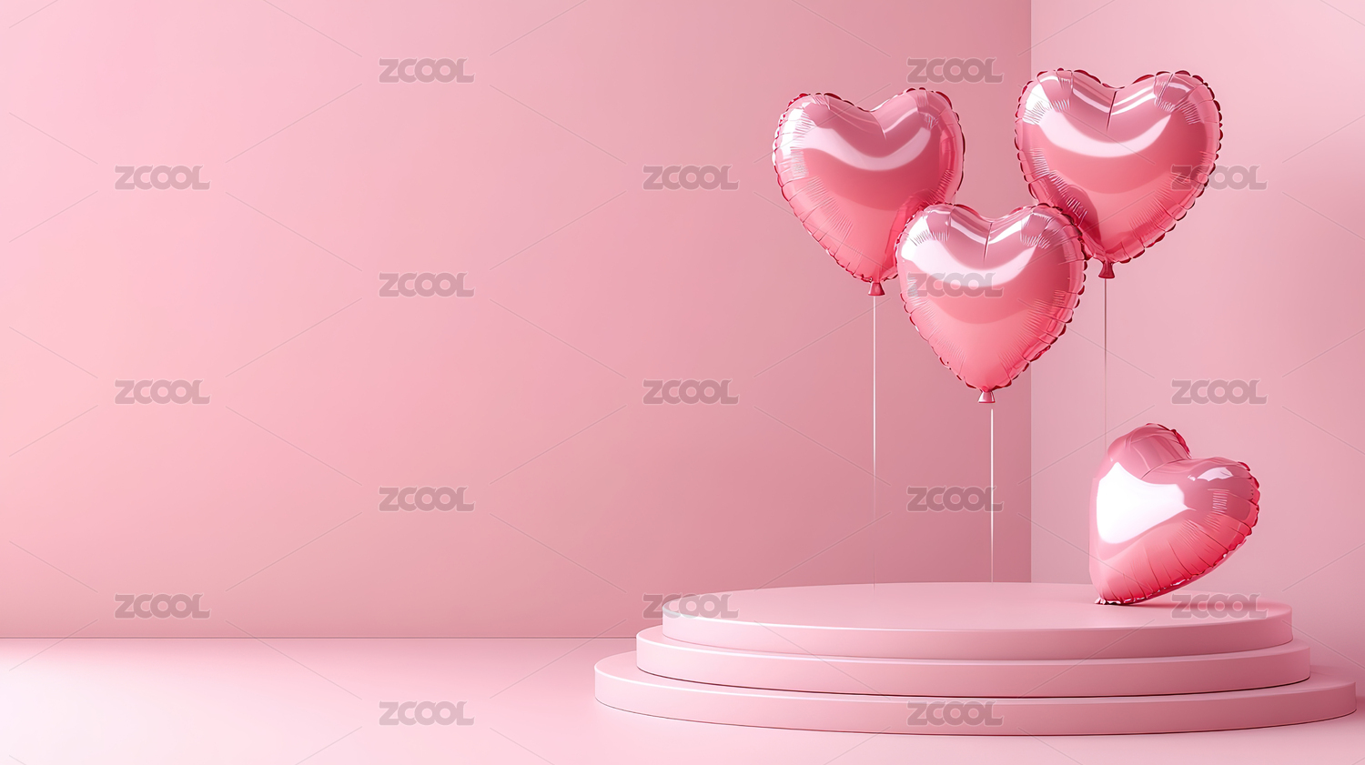粉红色背景下心形气球的特写镜头