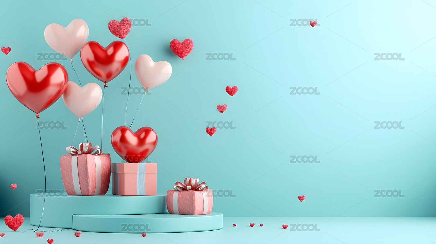 情人节心形气球和礼物盒