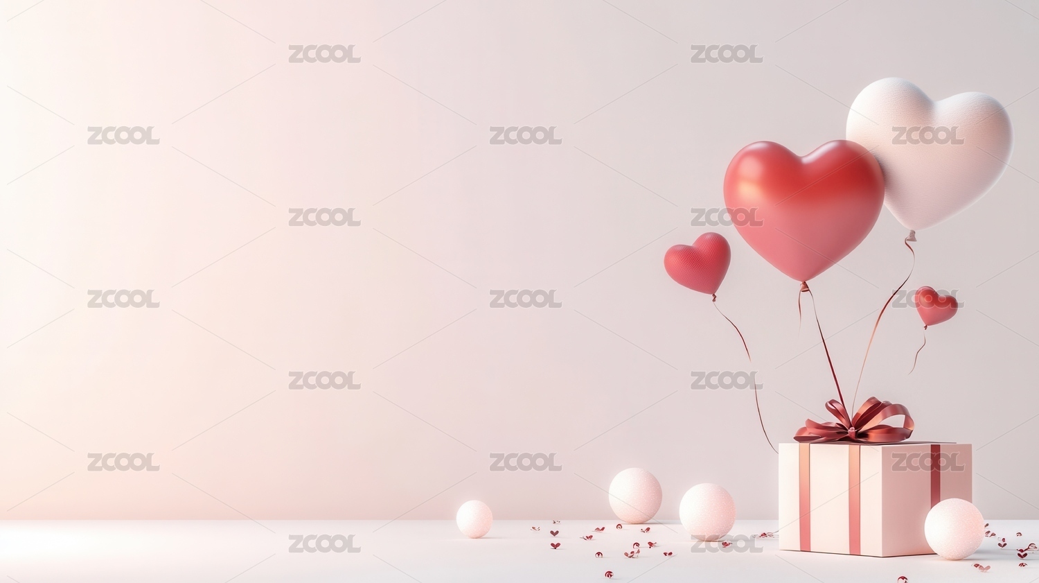 爱心气球与礼物盒