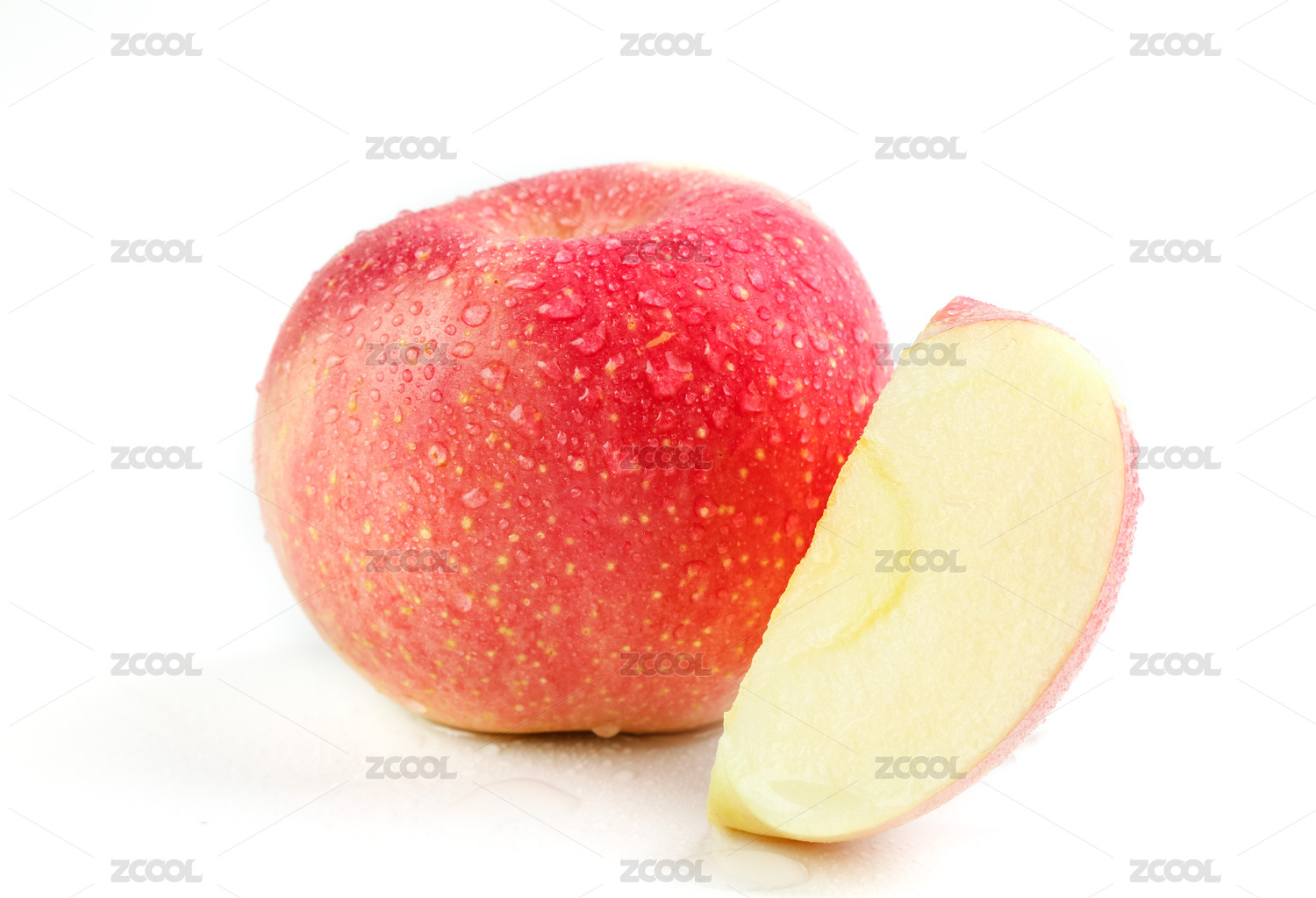 白底上放着切开的红苹果