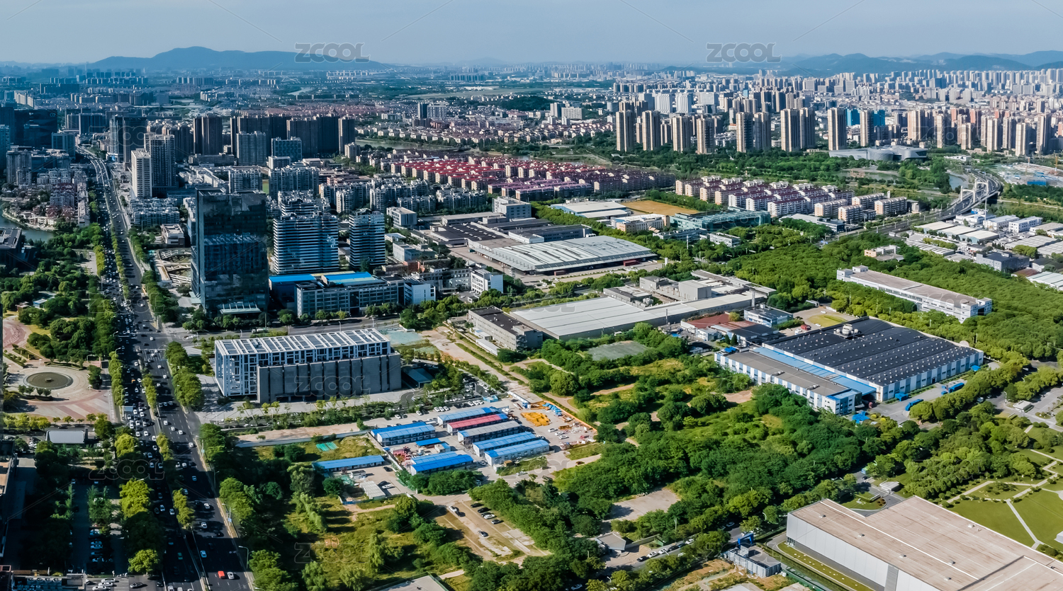 杭州滨江区新建城市商务写字楼园区建筑群航
