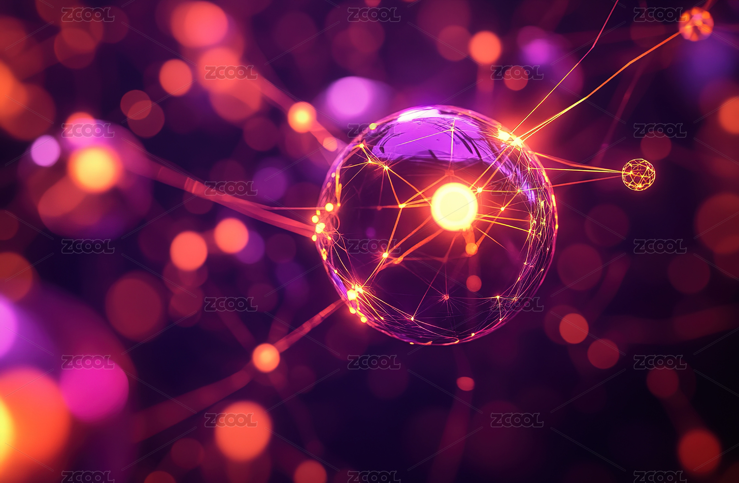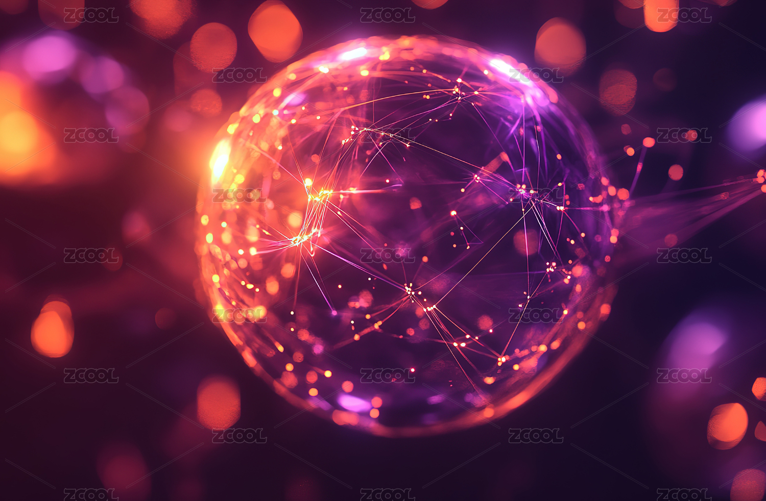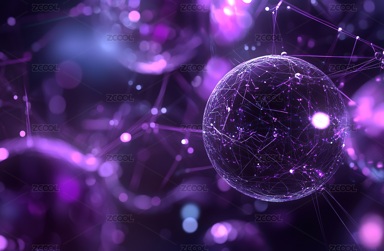 紫色背景下抽象网络球体