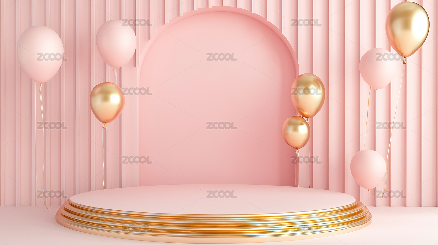 粉红色背景下的电商展台