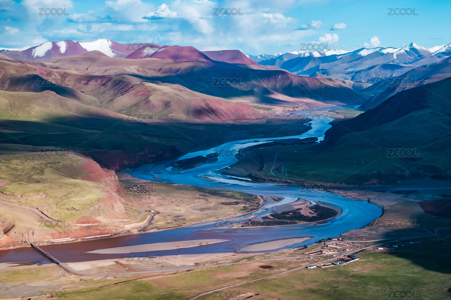 青海玉树曲麻河乡楚玛尔七渡口自然风光航拍
