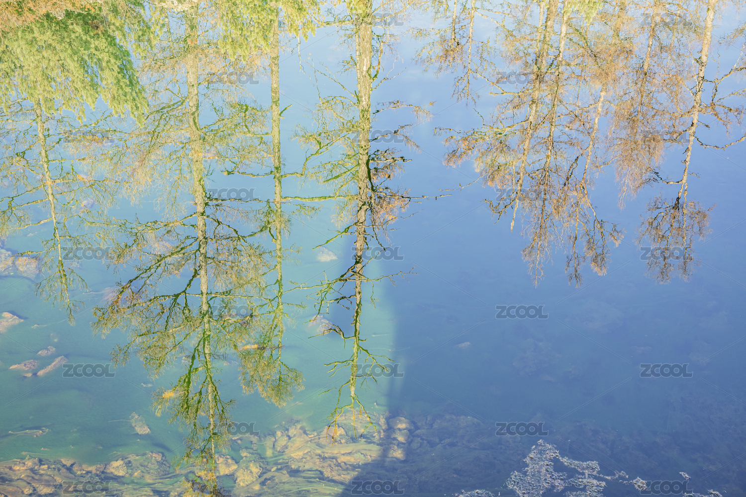 树林与水中倒影
