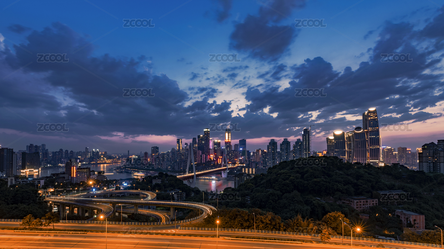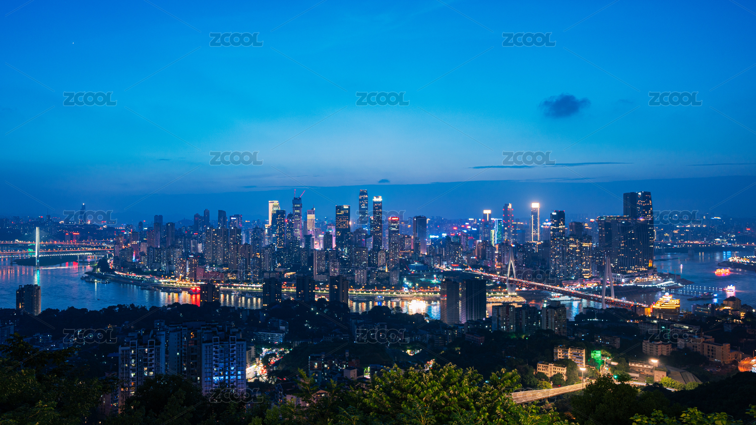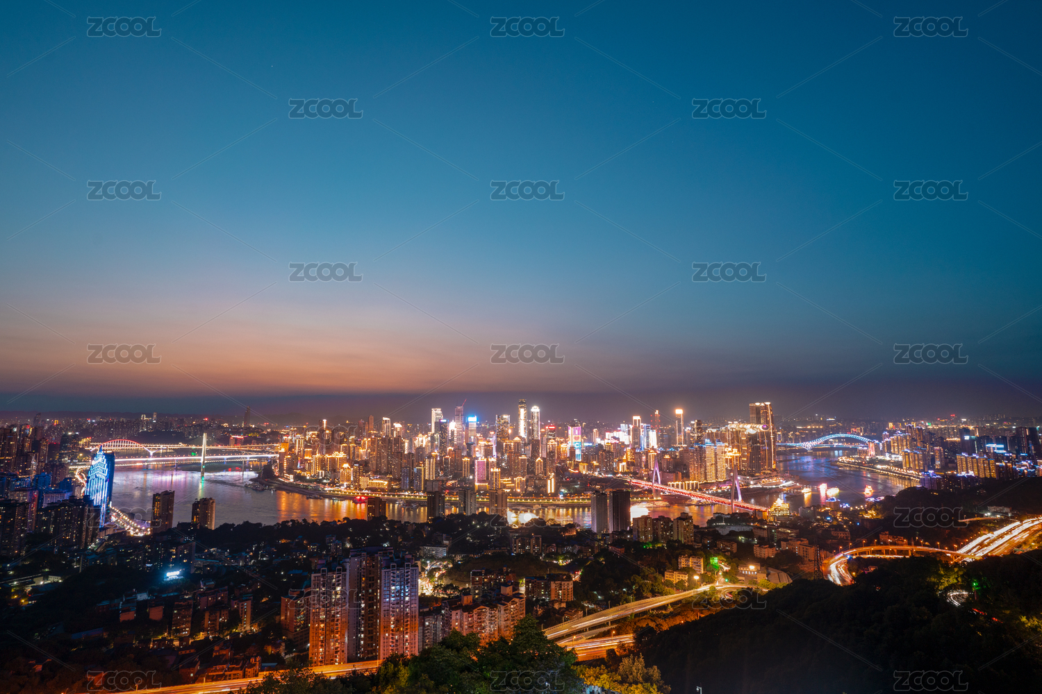 重庆南山一棵树渝中半岛日落晚霞夜景图