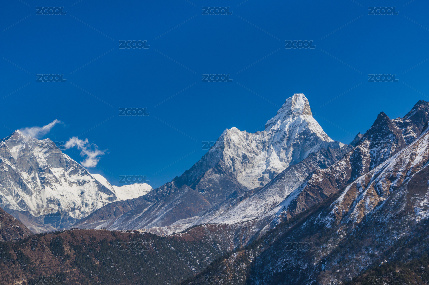 雪山,蓝天,天气晴朗,山峰,山顶,冬季,寒冷,积雪,云,自然风光