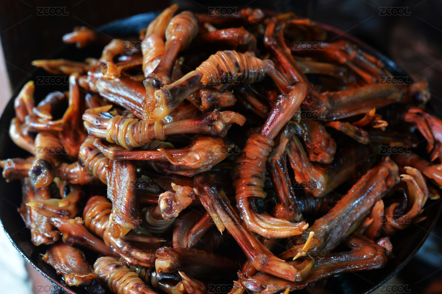 竹筐里的中国传统美食卤鸭翅鸭脚