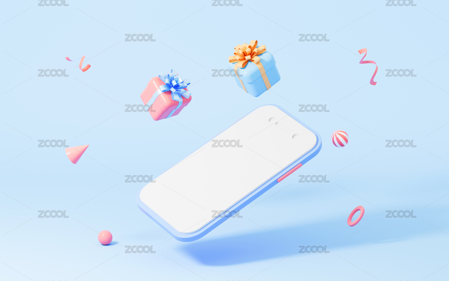 3D,插画,背景,网络,在线,手机,产品,促销,卡通,商店