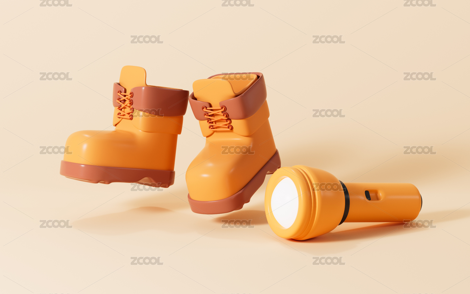 卡通登山靴和手电筒3D渲染