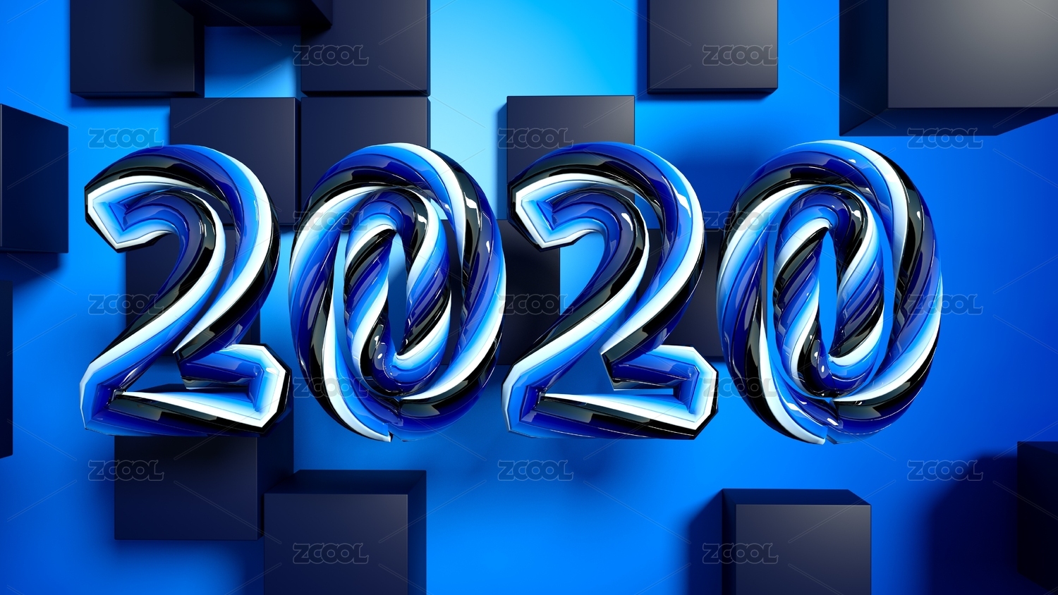 由黑色方块和3D金属字体组成的2019年科幻背景