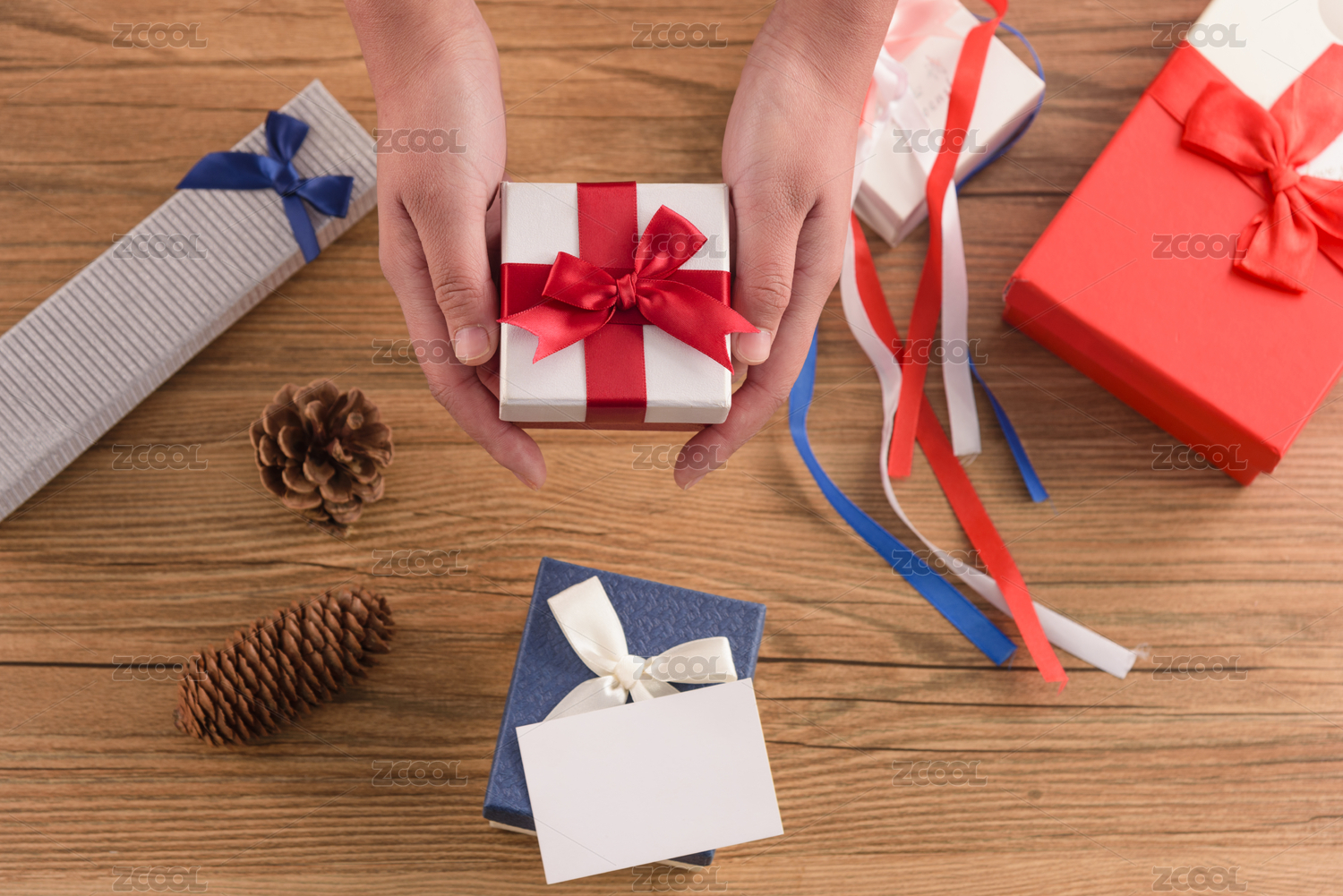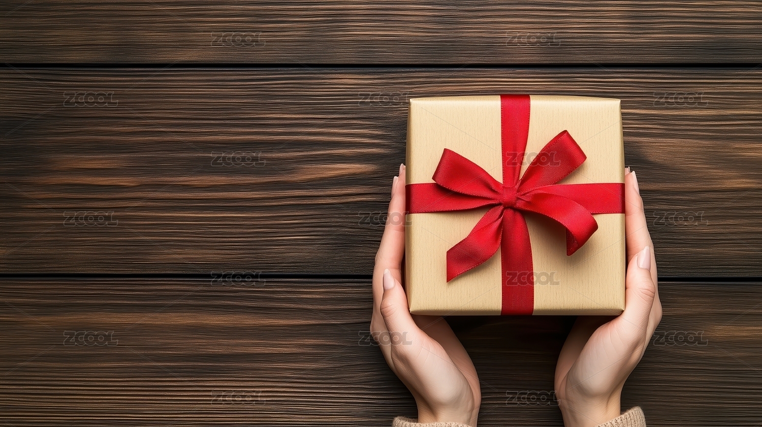 红色礼物盒双手捧着