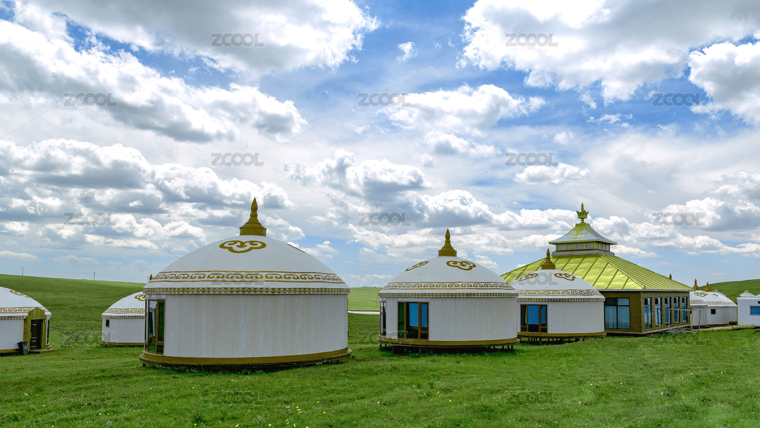 中国内蒙古通辽锡林郭勒草原摹蒙古包民族风情景观
