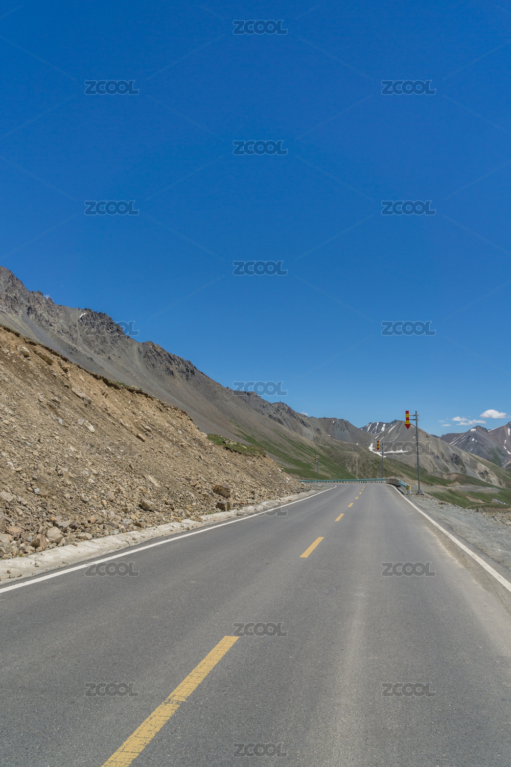 夏季晴天中国新疆G217独库公路戈壁山地弯道