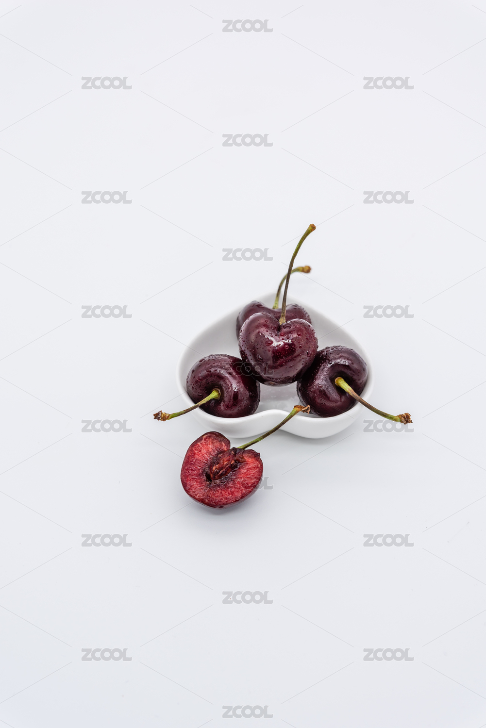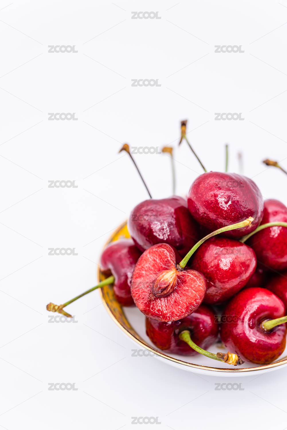 樱桃,车厘子,水果,棚拍,白背景,白底,一盘,一堆,碟子,一碟