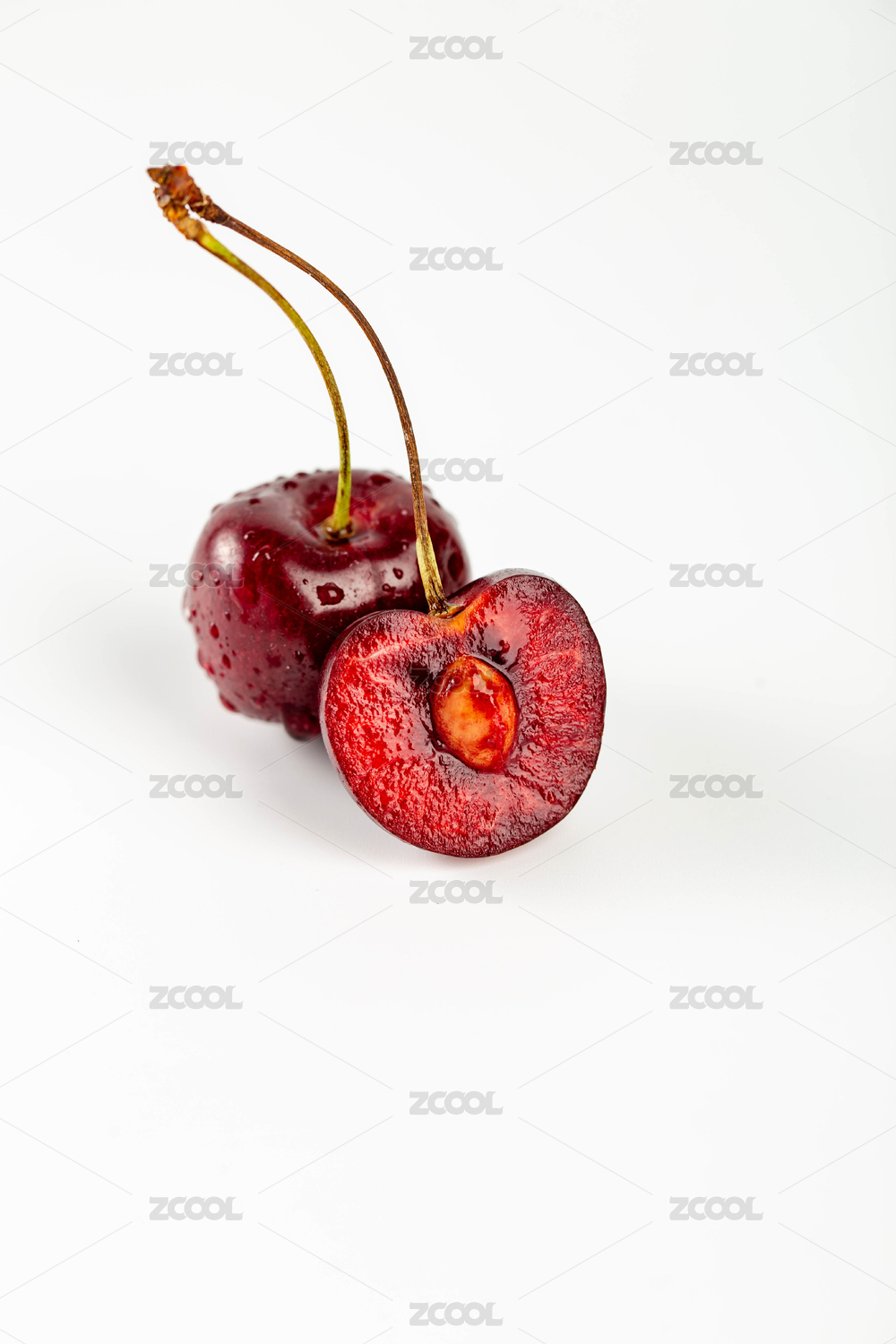 室内棚拍白色背景前新鲜的樱桃车厘子