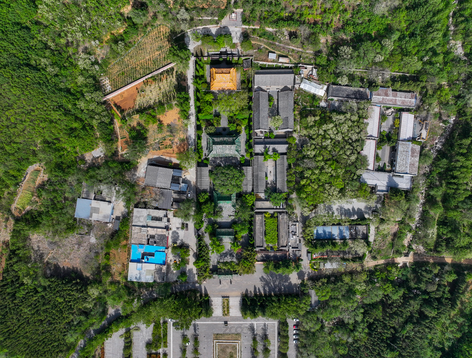河南省郑州市登封市少室山嵩山永泰寺航拍