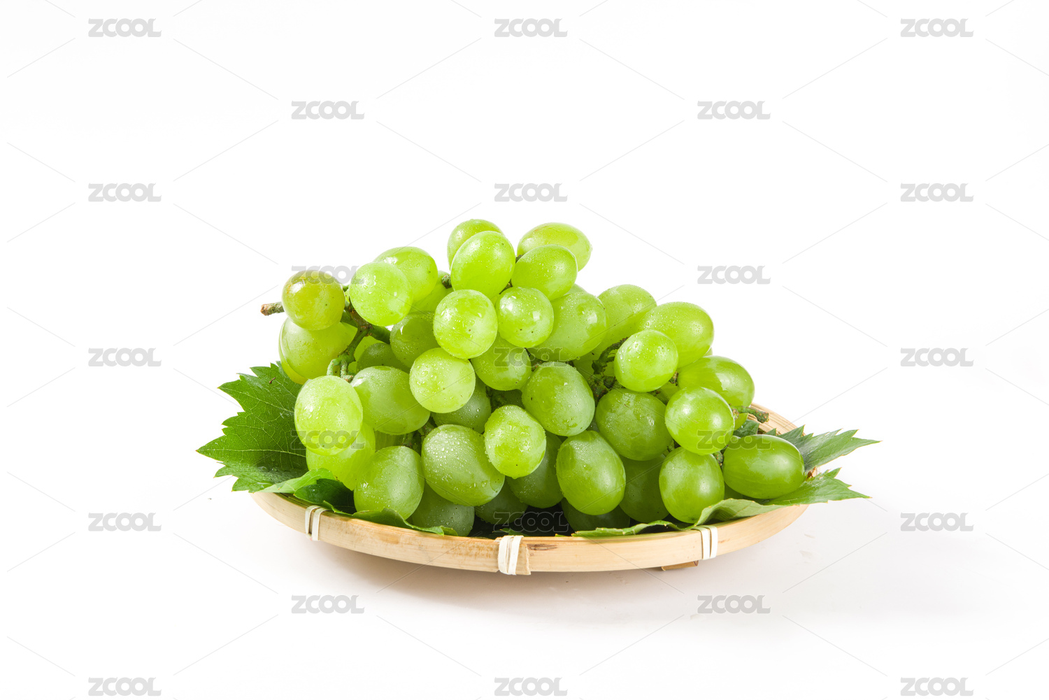 白底上带水珠新鲜的阳光玫瑰葡萄
