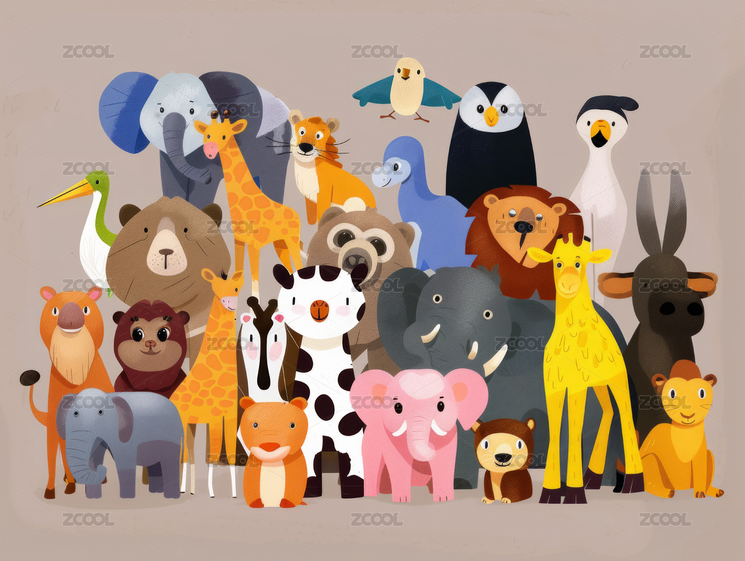 微缩创意儿童节积木彩虹桥上可爱的动物
