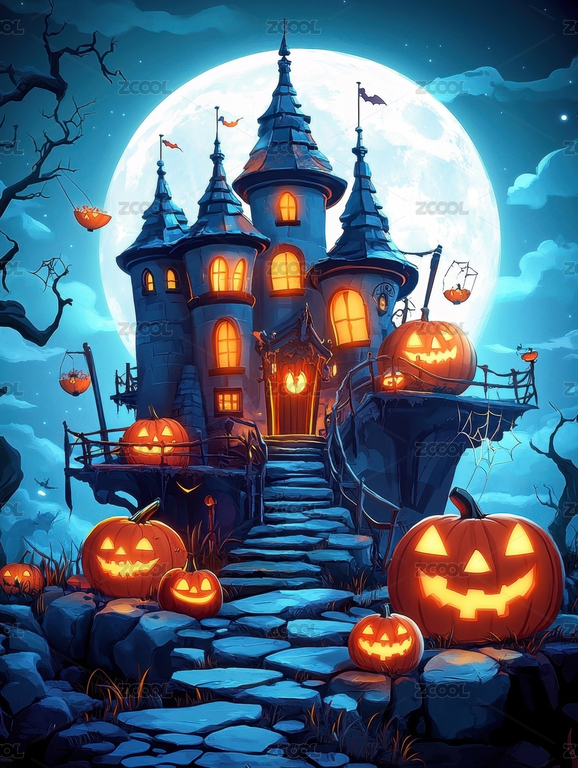 万圣节月夜鬼屋南瓜场景